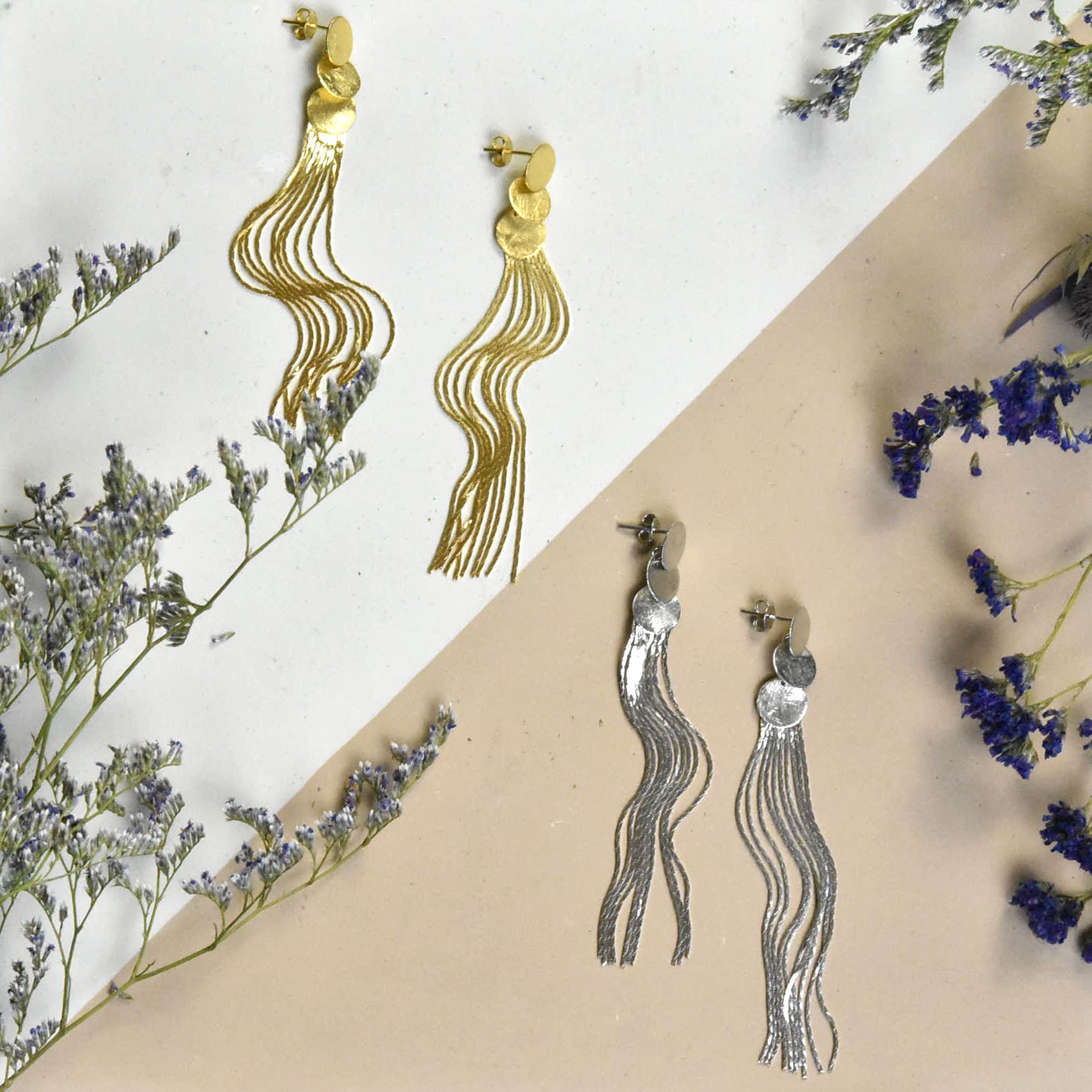 Jewelry handmade in Brazil that combines tropical and mid-century design sensibilities.
