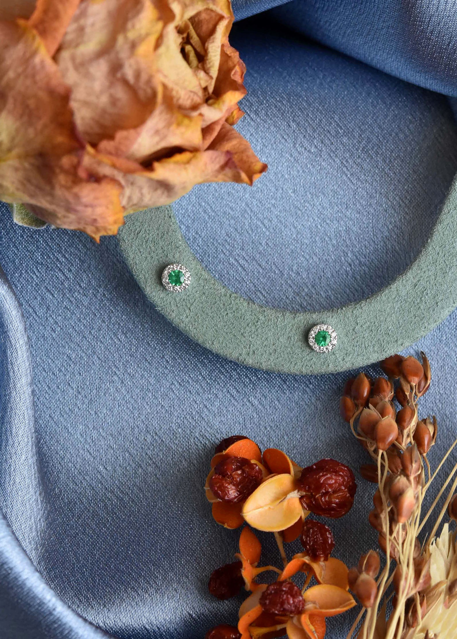 - Two round Emeralds, with a total weight of .11 carats