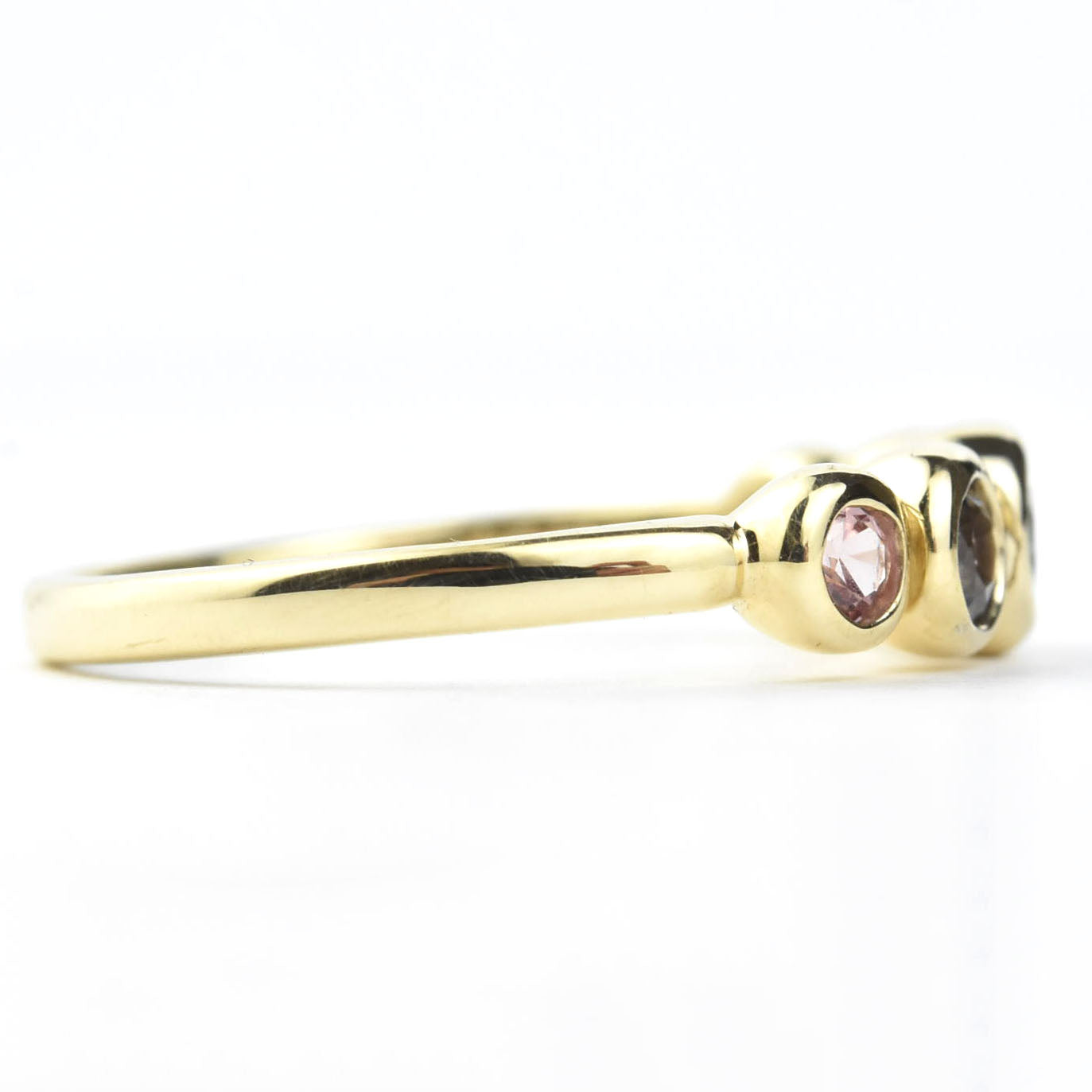 - Five round, natural, green and purple Sapphires weighing approximately 0.63 carats total