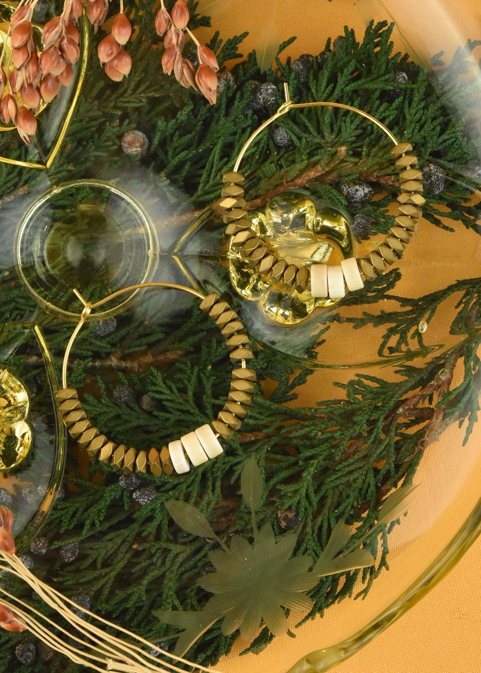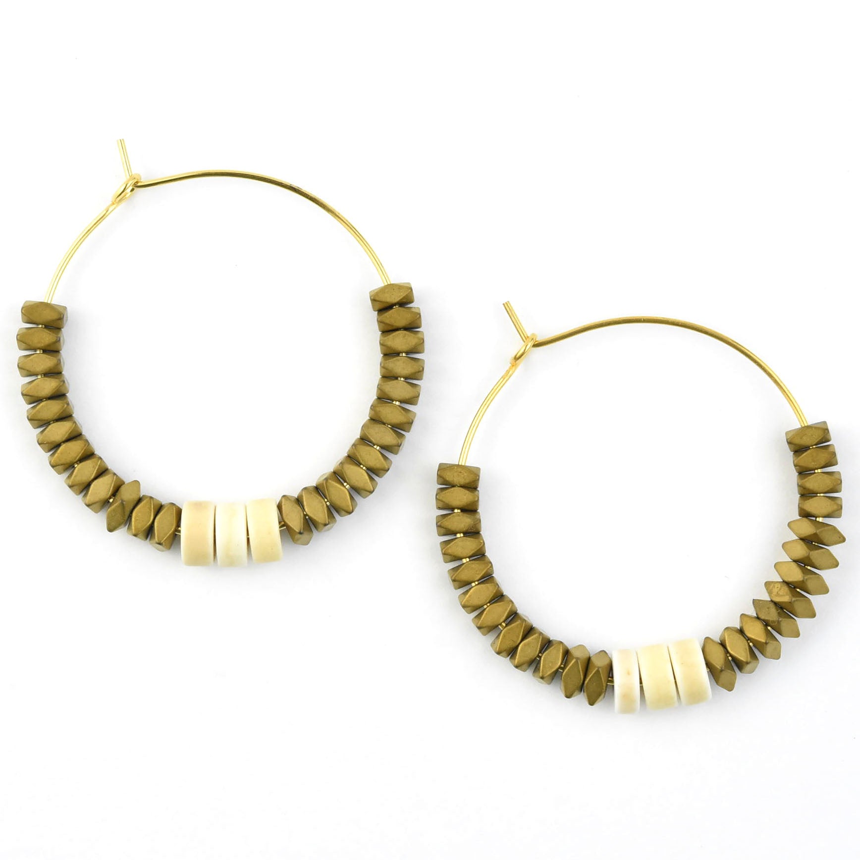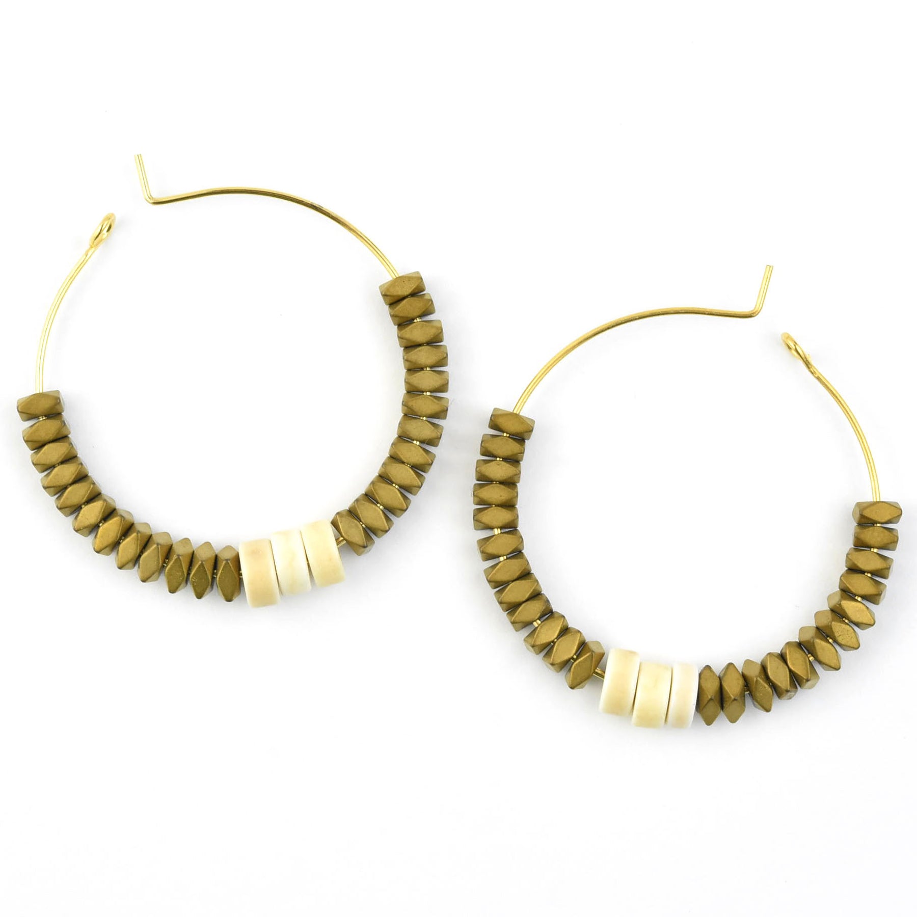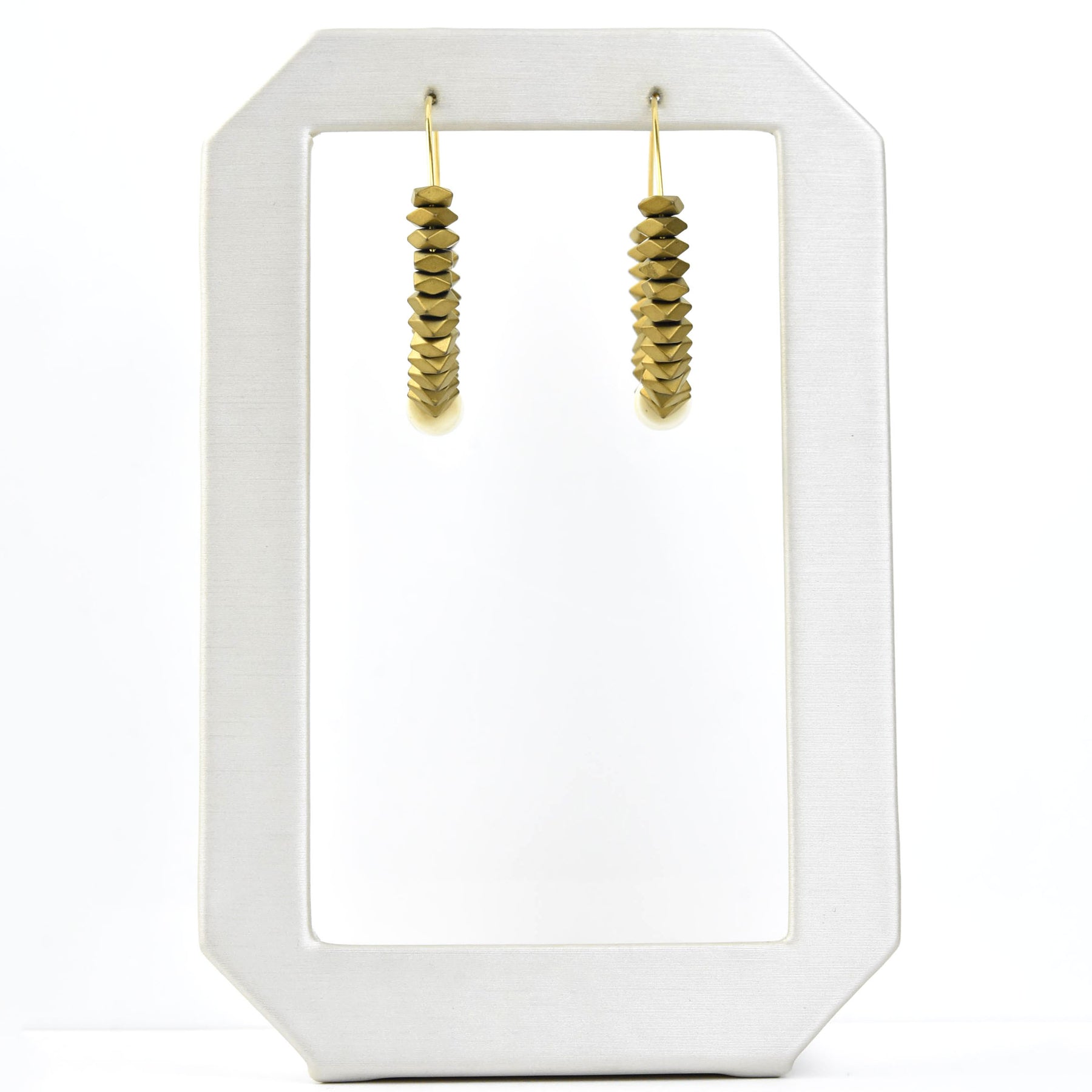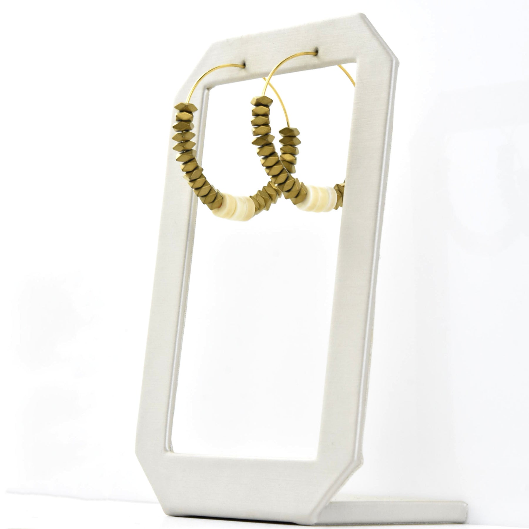 David Aubrey lines vary from delicate, meticulously assembled jewelry of monochromatic hues to larger, more vibrant pieces. Some collections are themed, whether romantic, vintage, tribal, or art deco. Each piece is painstakingly crafted with an array of raw materials, including plated and oxidized brass and white metal, semiprecious stones, vintage glass beads, Indian handmade glass beads, acrylic, and carved bone.