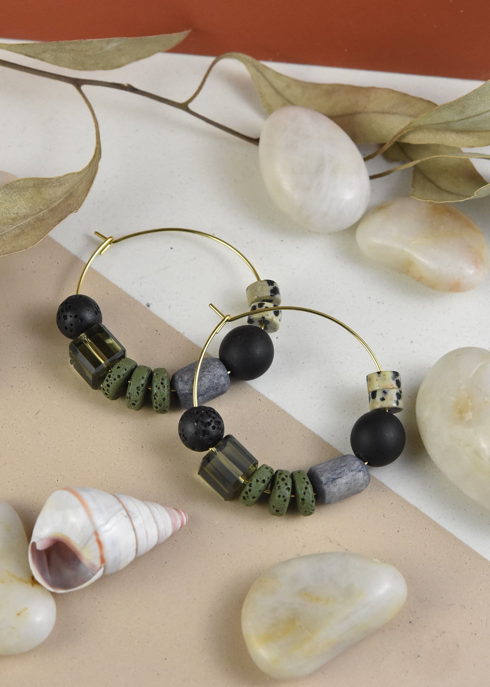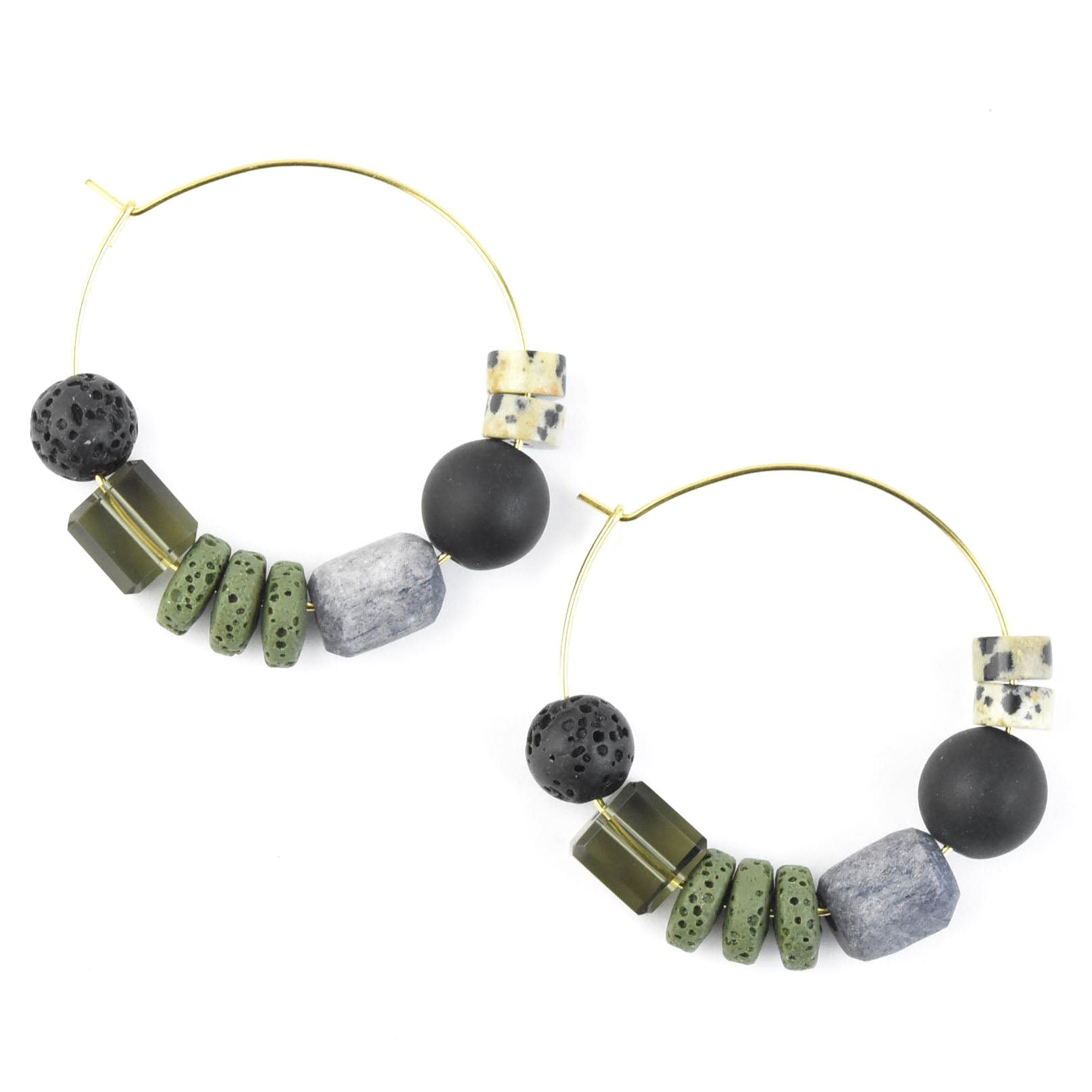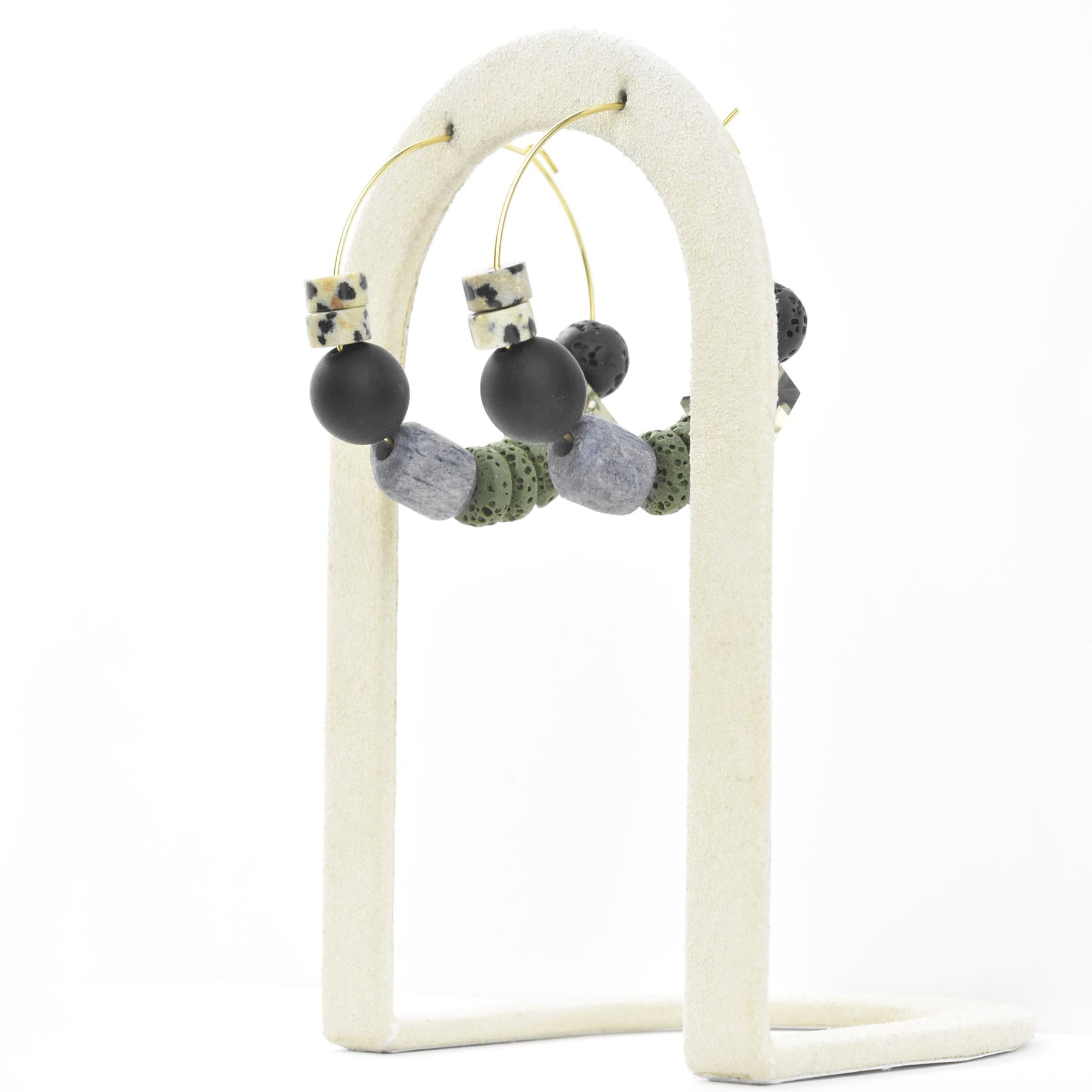 David Aubrey lines vary from delicate, meticulously assembled jewelry of monochromatic hues to larger, more vibrant pieces. Some collections are themed, whether romantic, vintage, tribal, or art deco. Each piece is painstakingly crafted with an array of raw materials, including plated and oxidized brass and white metal, semiprecious stones, vintage glass beads, Indian handmade glass beads, acrylic, and carved bone.