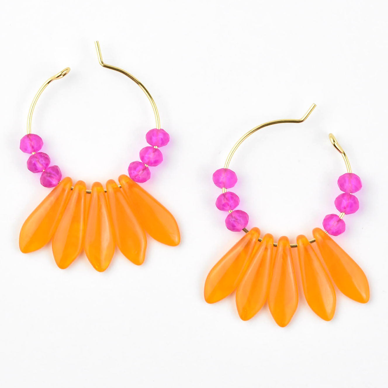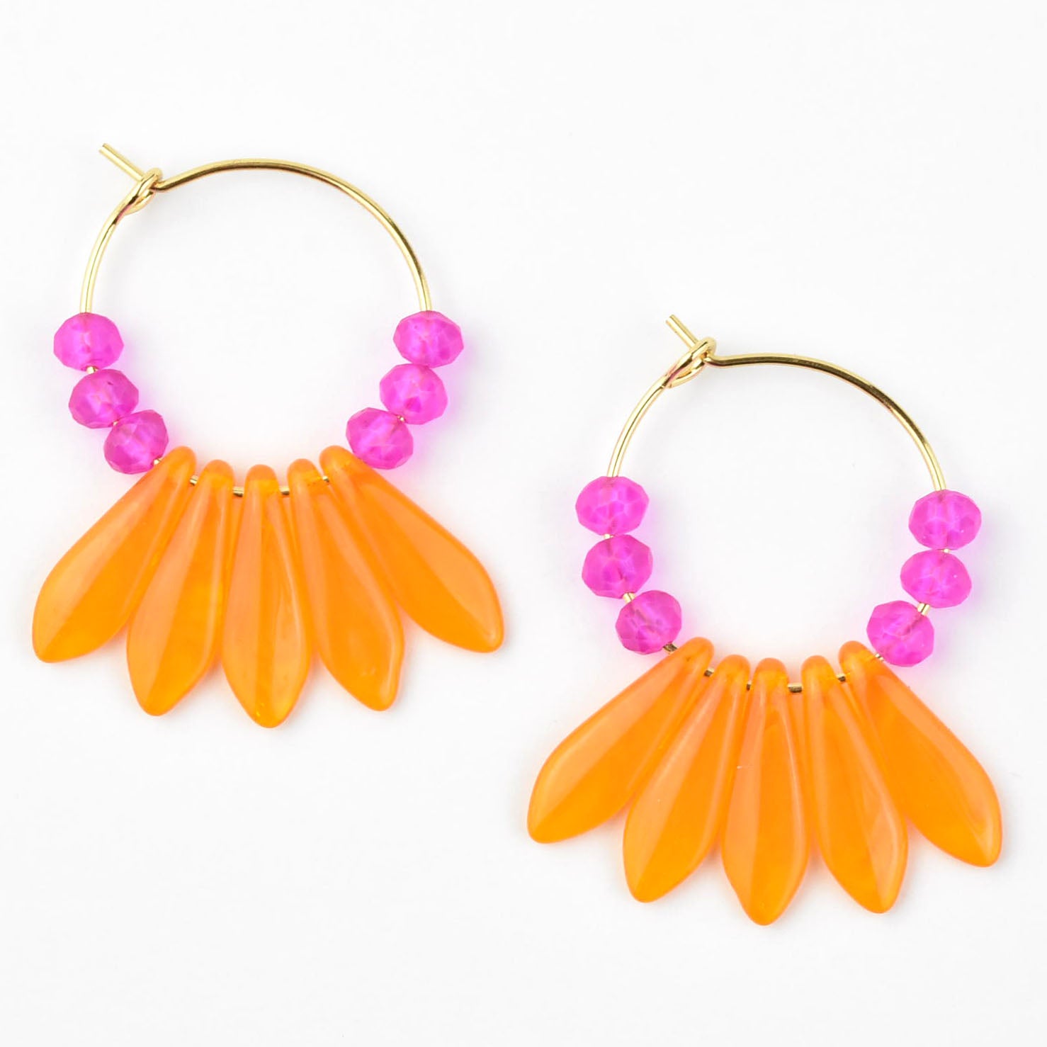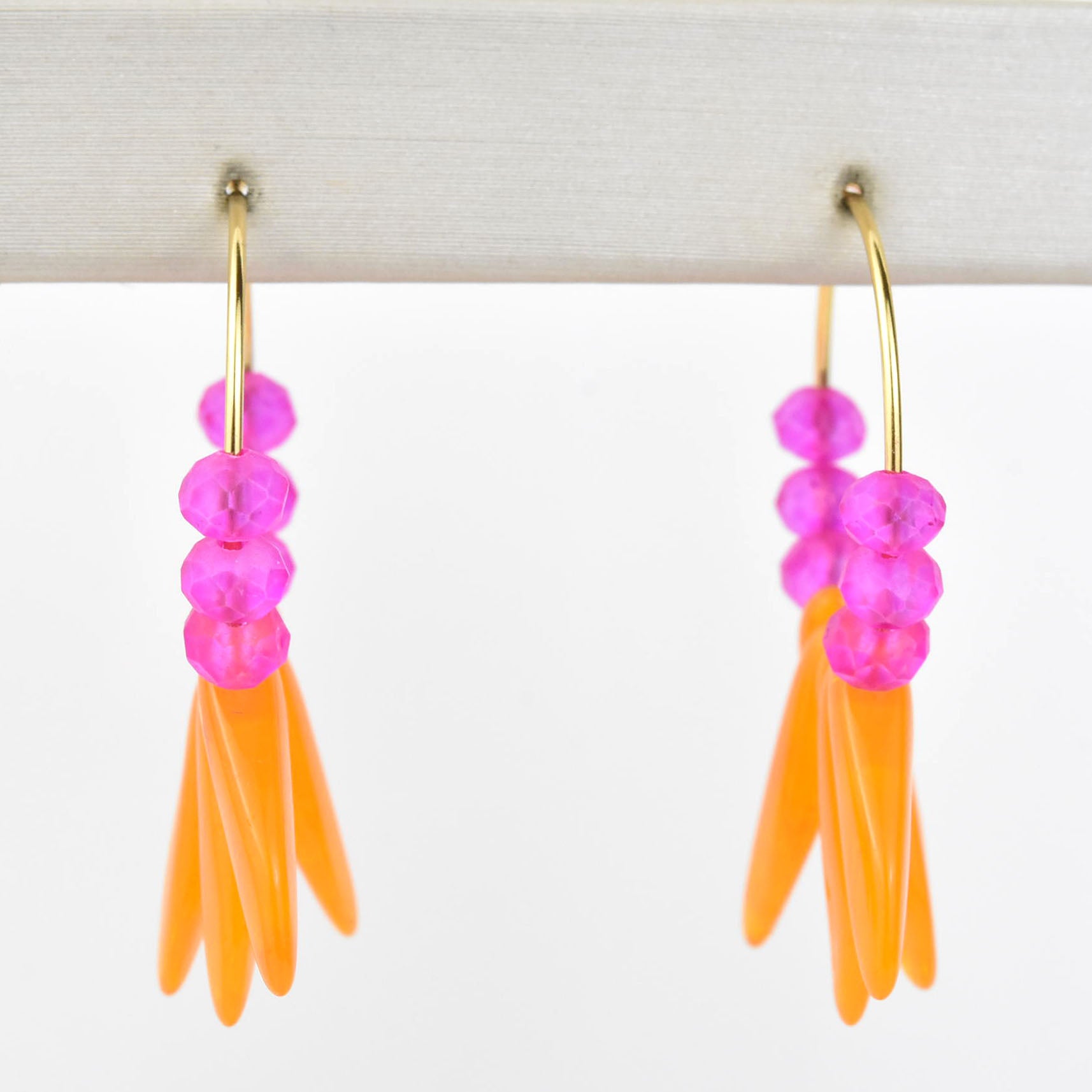 - Neon pink and orange glass beads