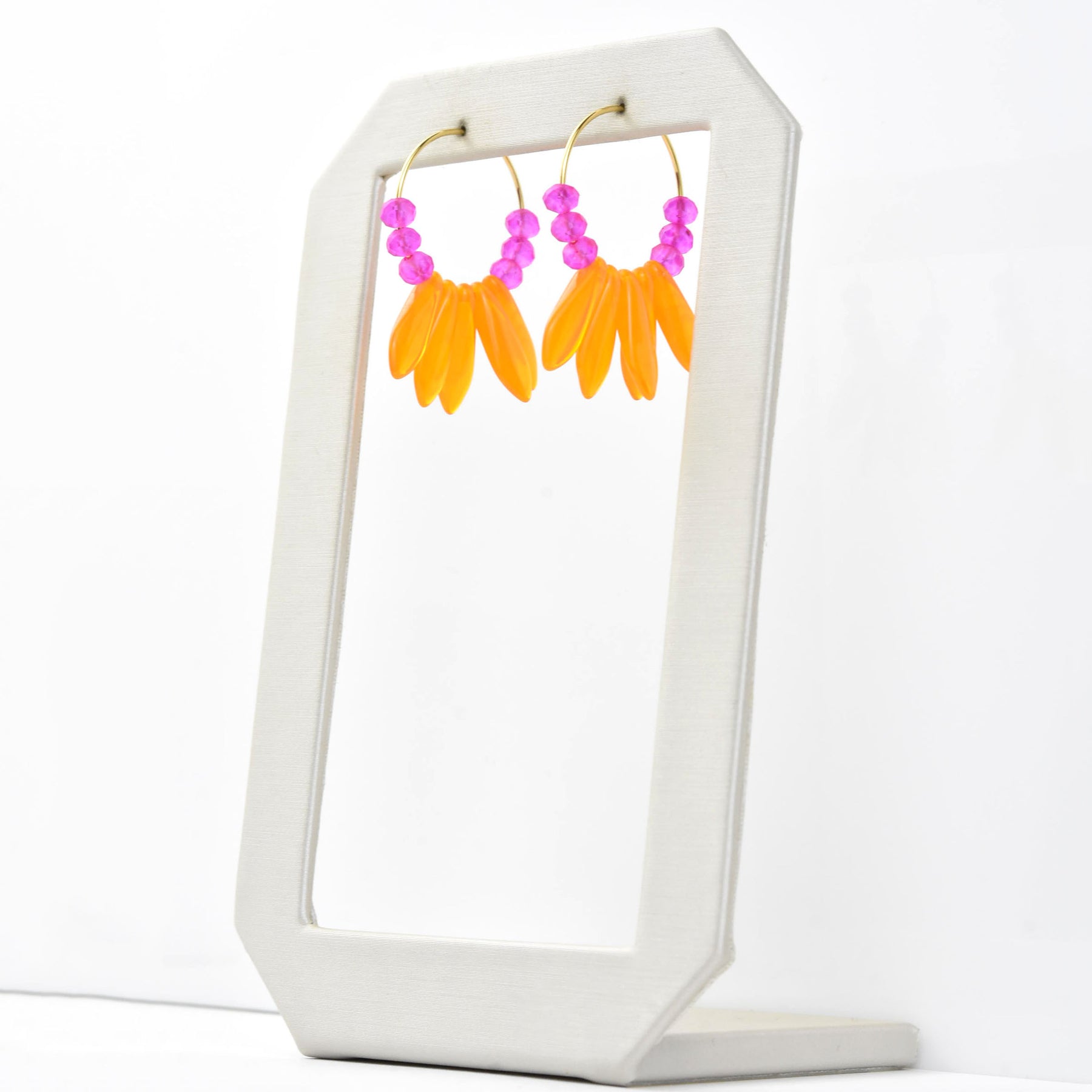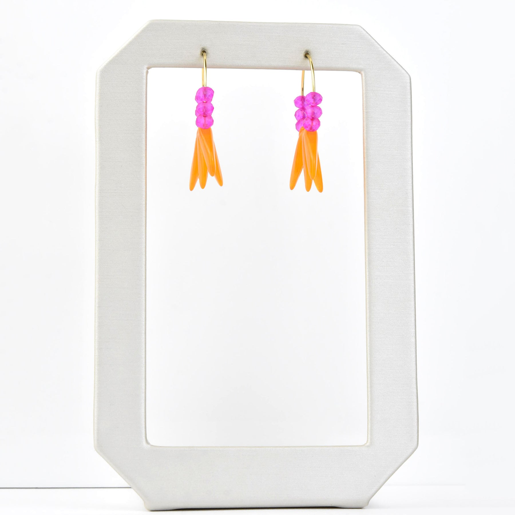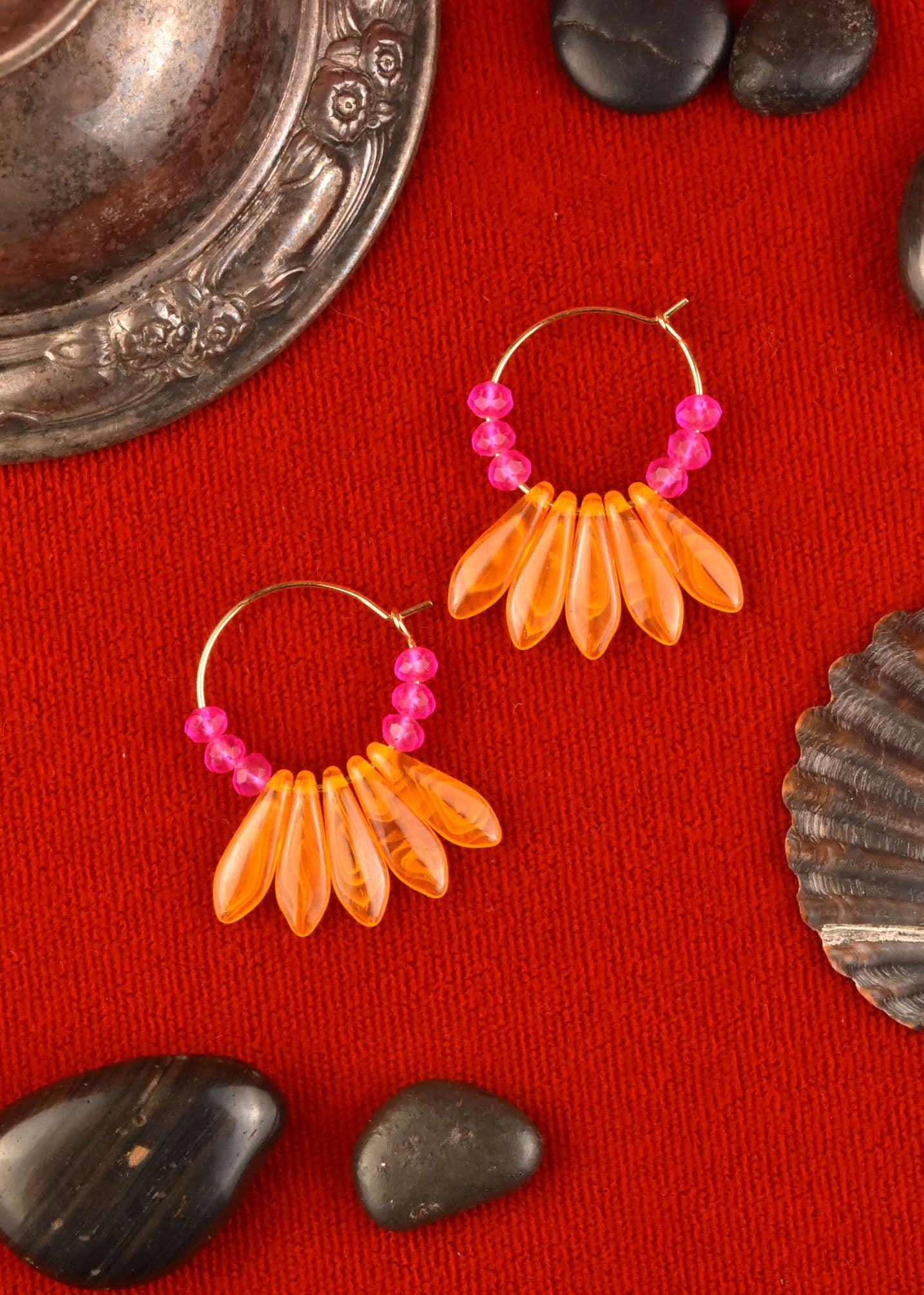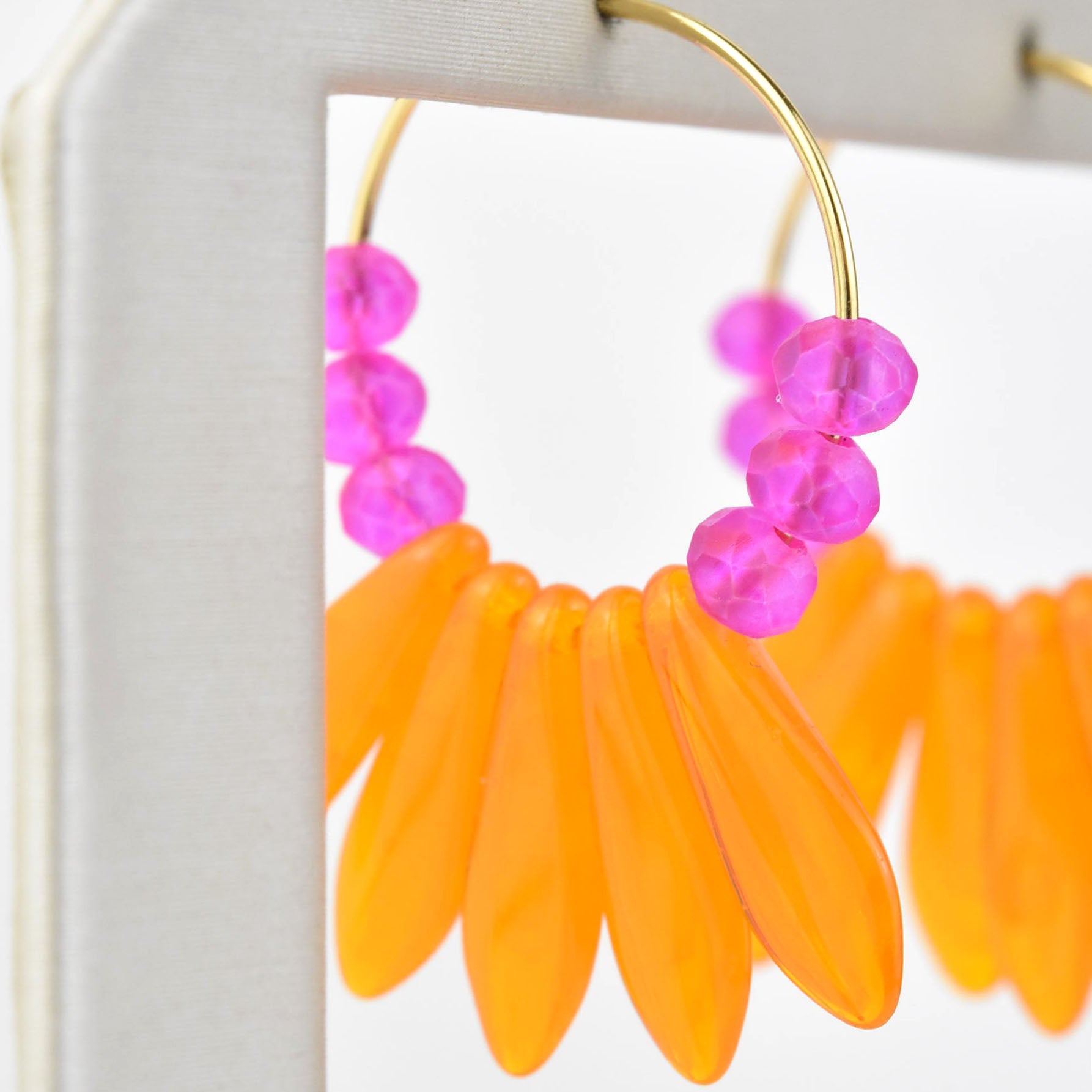 - Neon pink and orange glass beads
