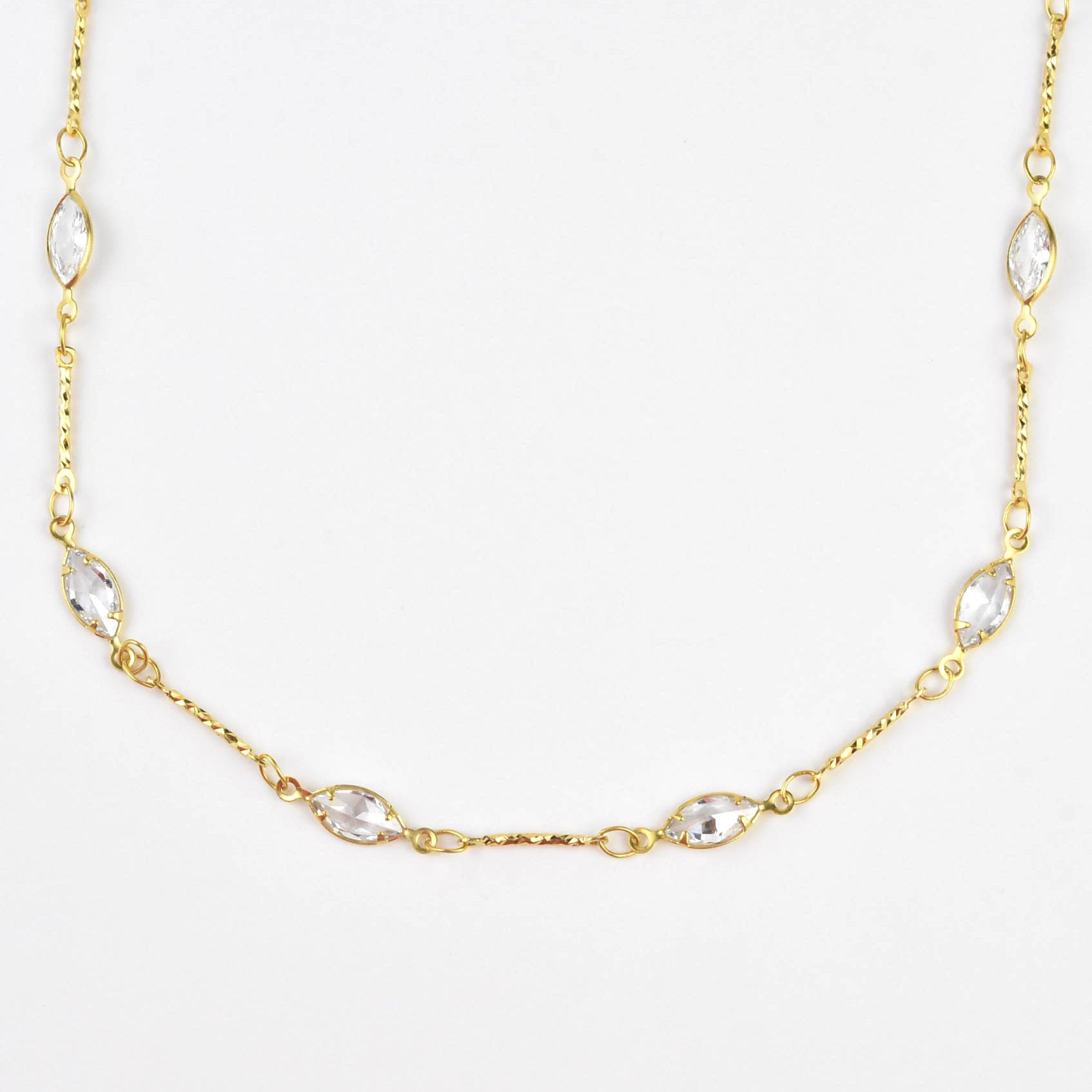 Crystal Bead Station Necklace with Chunky Chain - Goldmakers Fine Jewelry