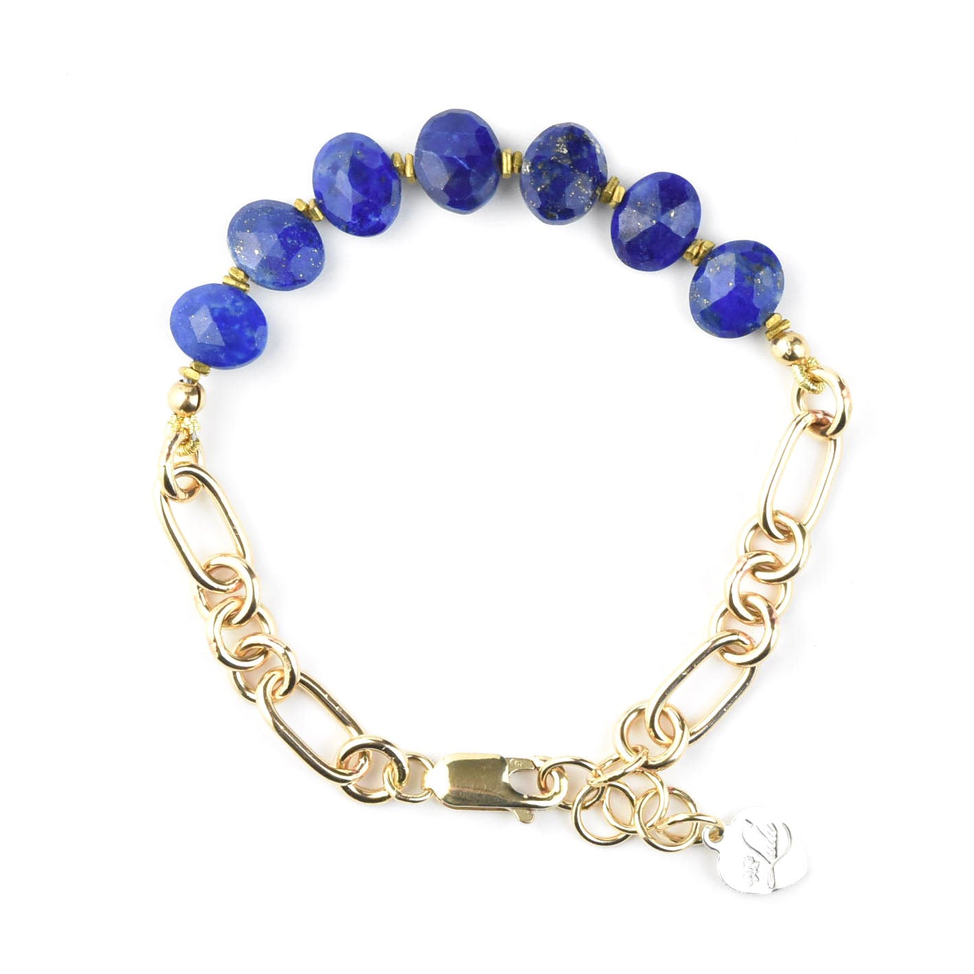 - Faceted lapis beads with brass accent beads