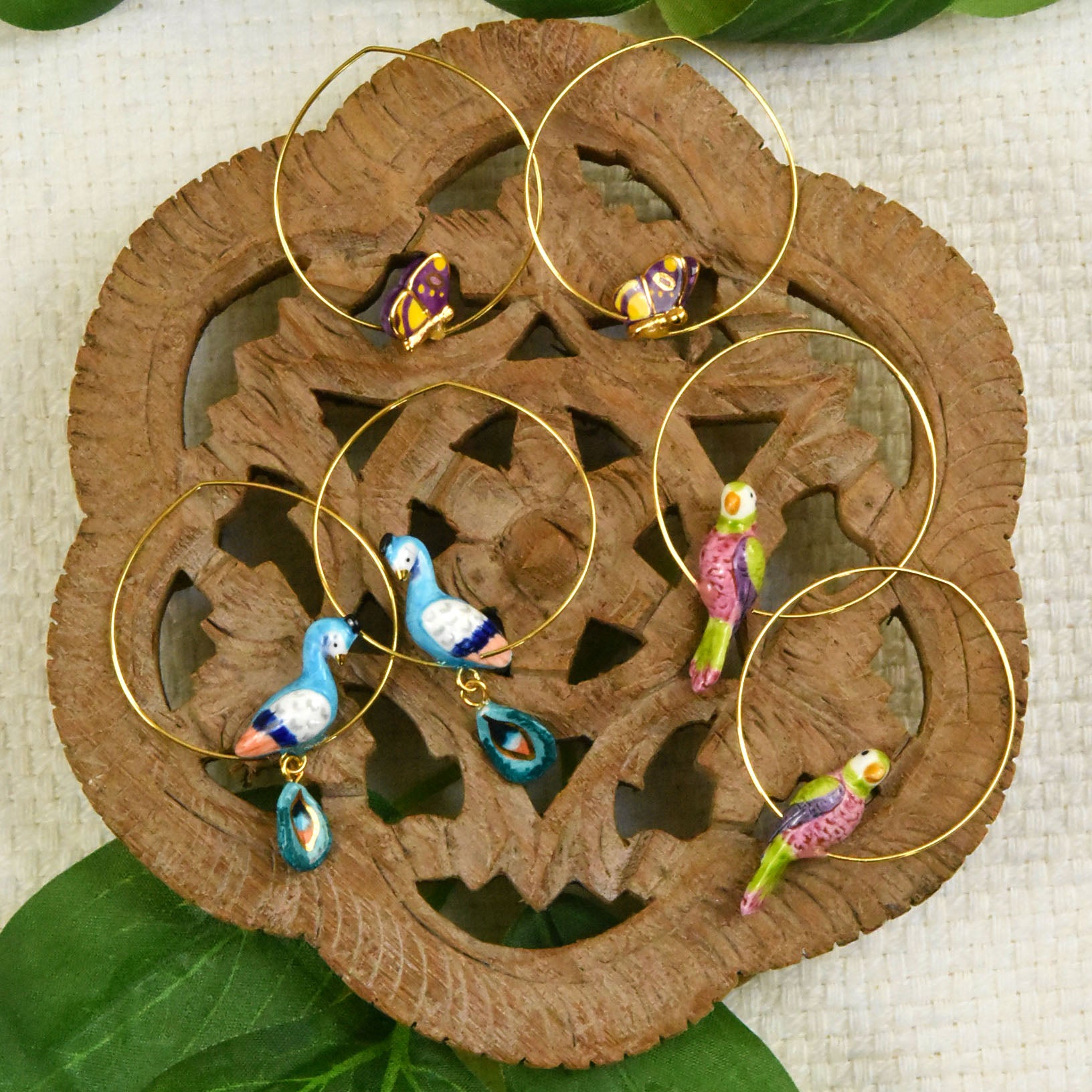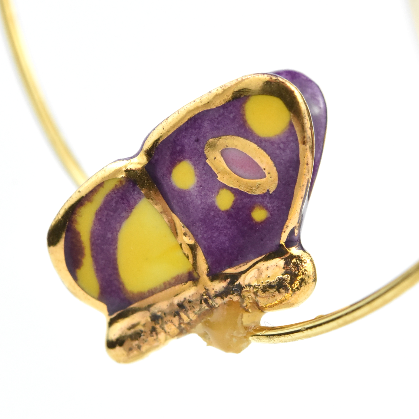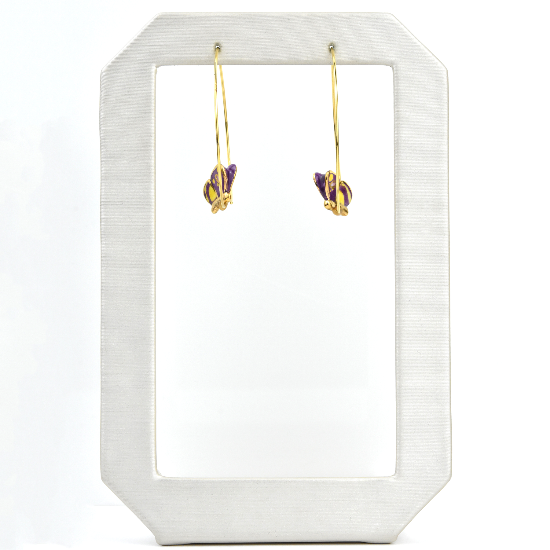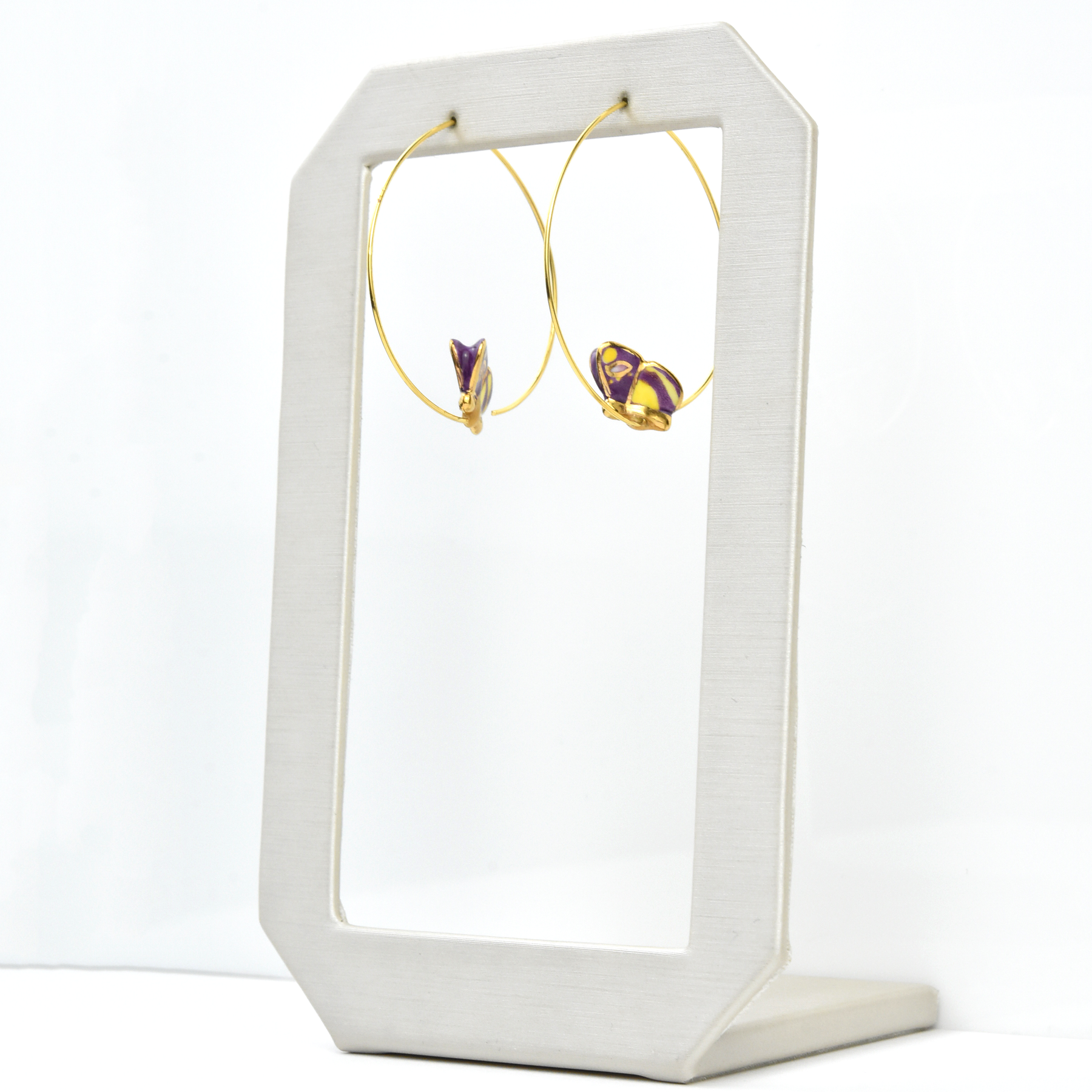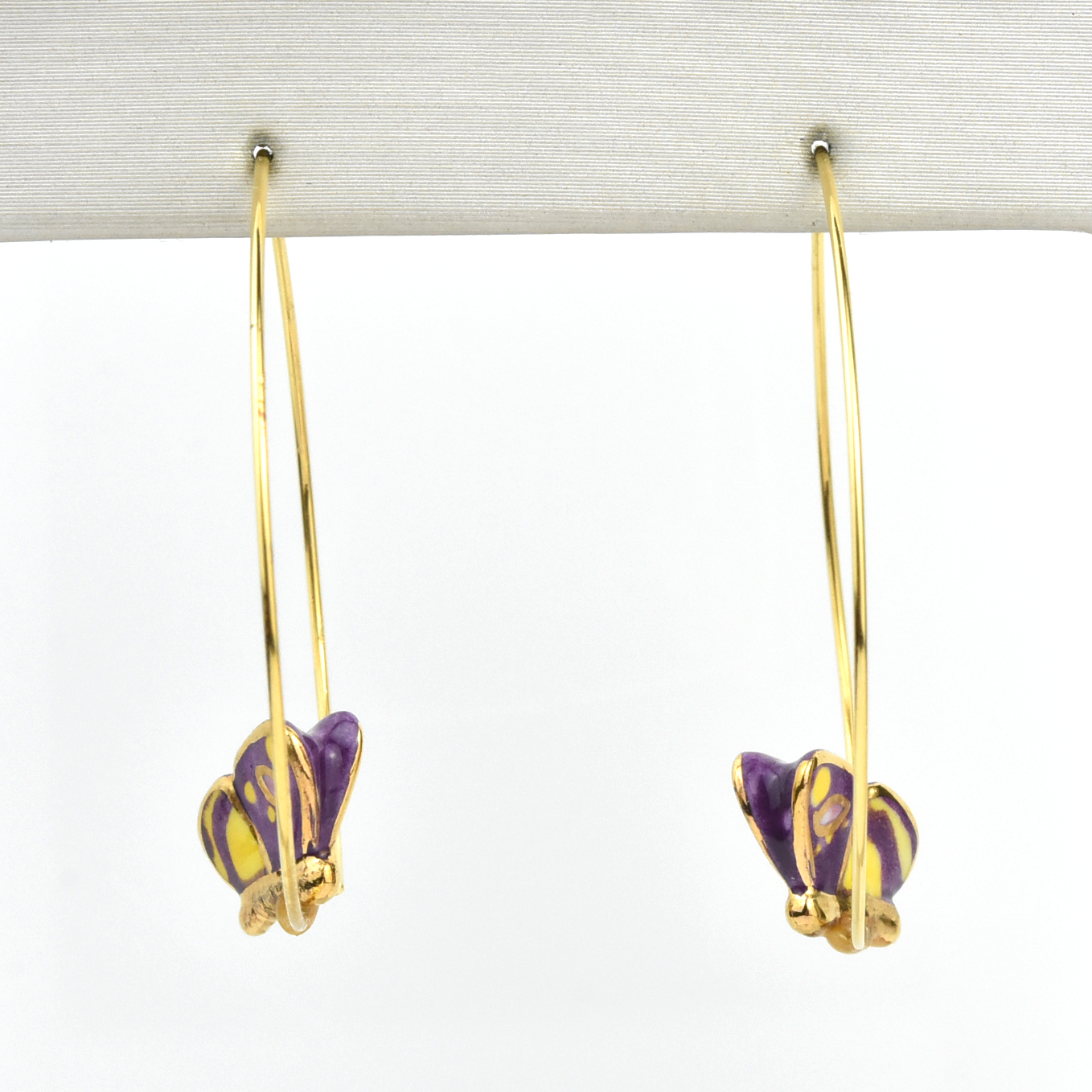 - Earring hoops are gold over brass