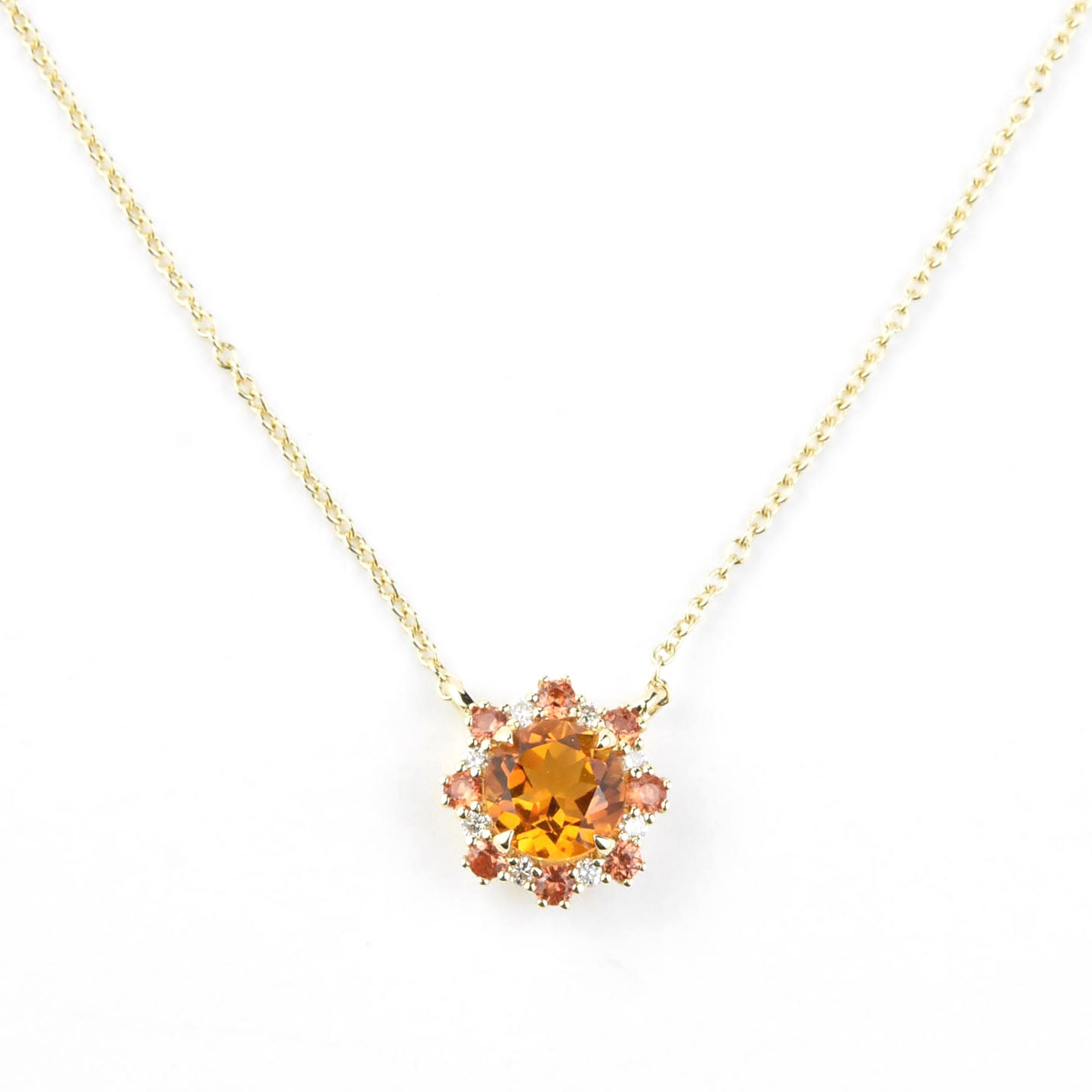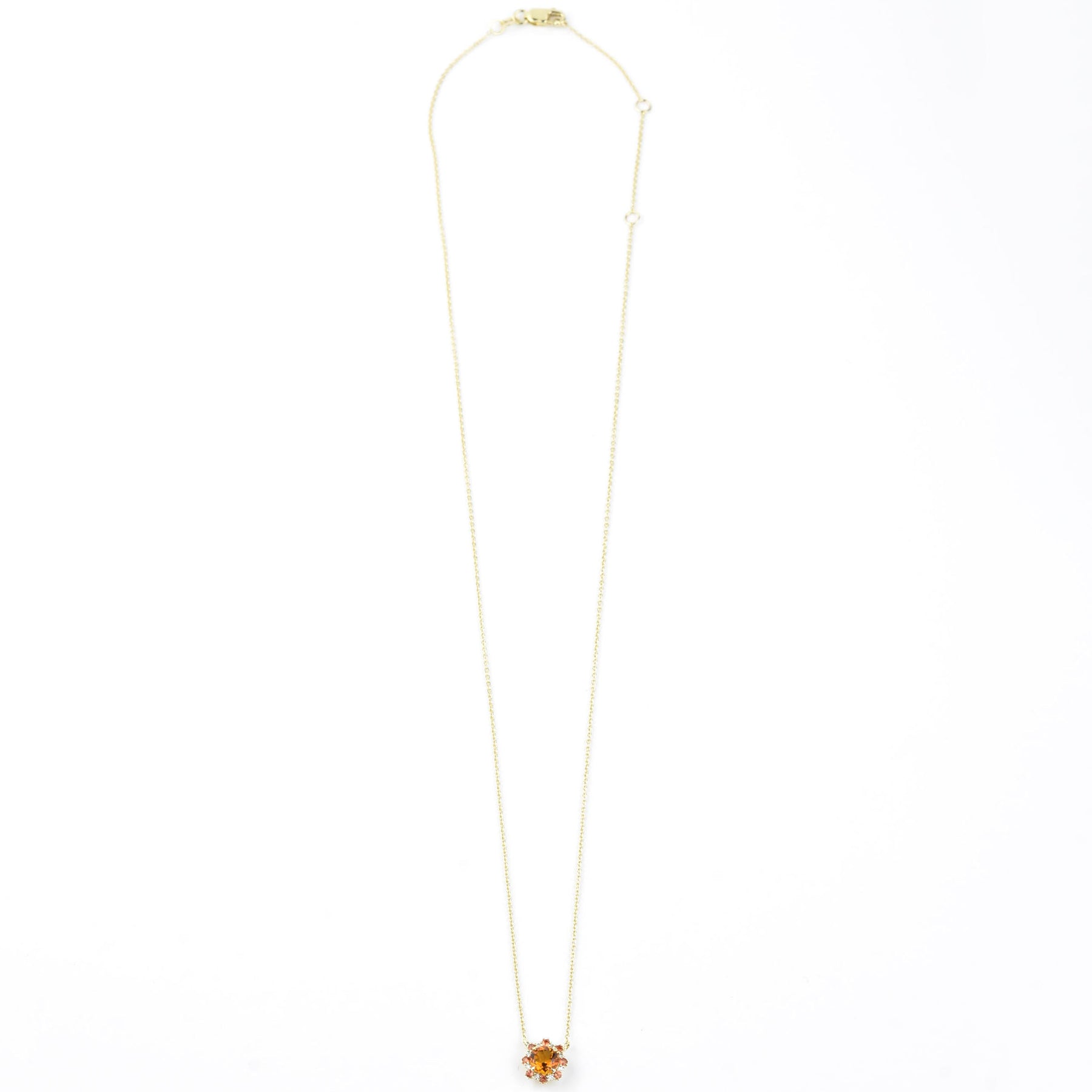 • 8 round, brilliant-cut Orange Sapphires with a total weight of .10 carats