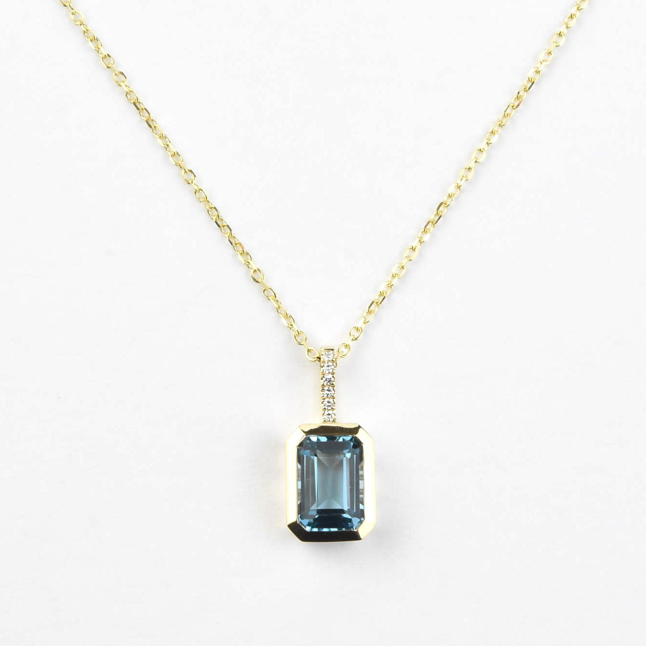 - Emerald cut London blue topaz, weighing 1.12 carats