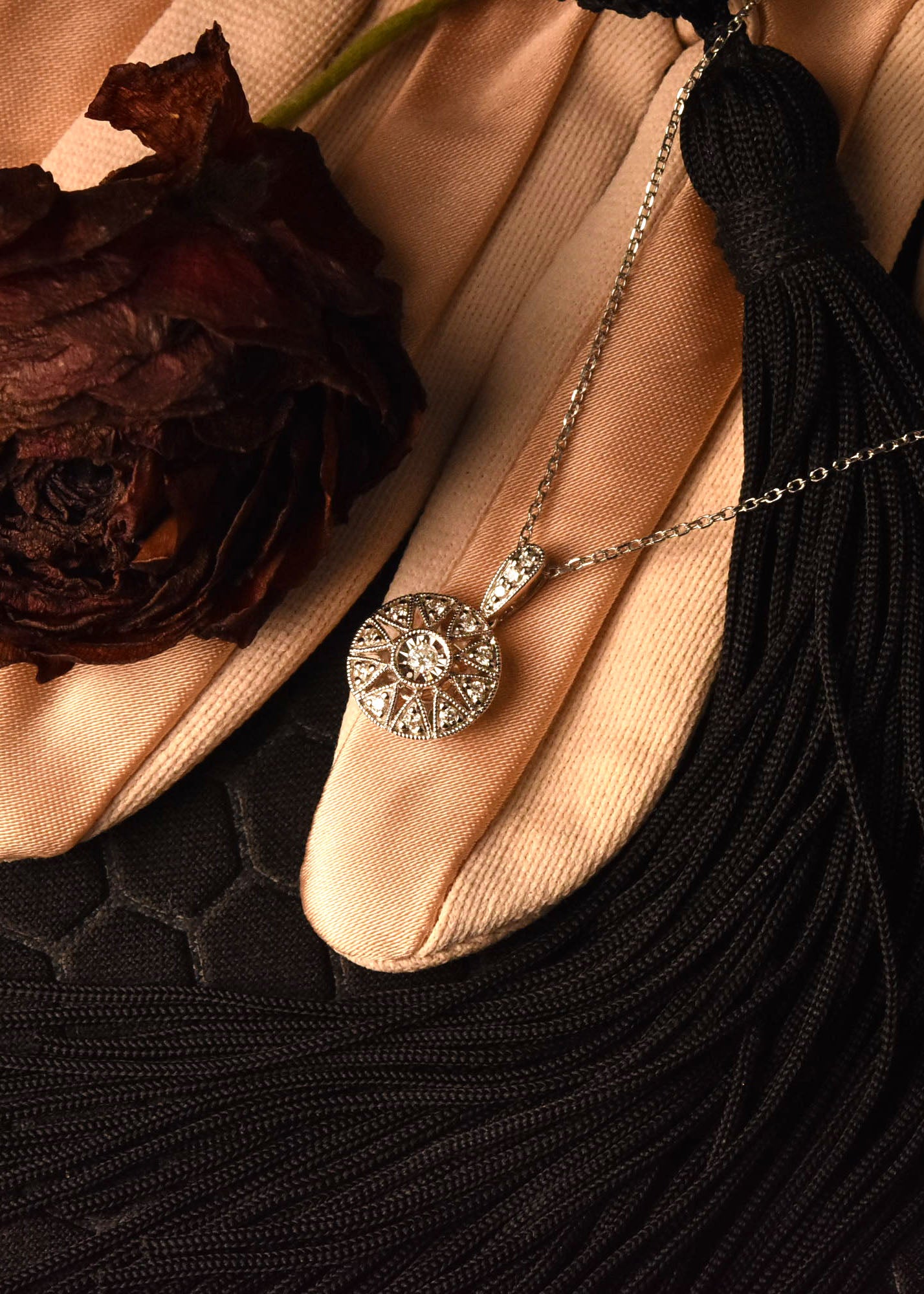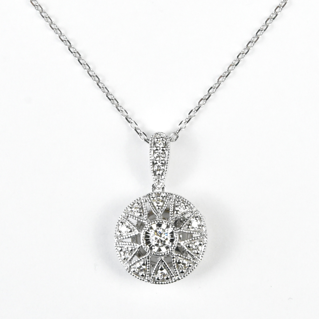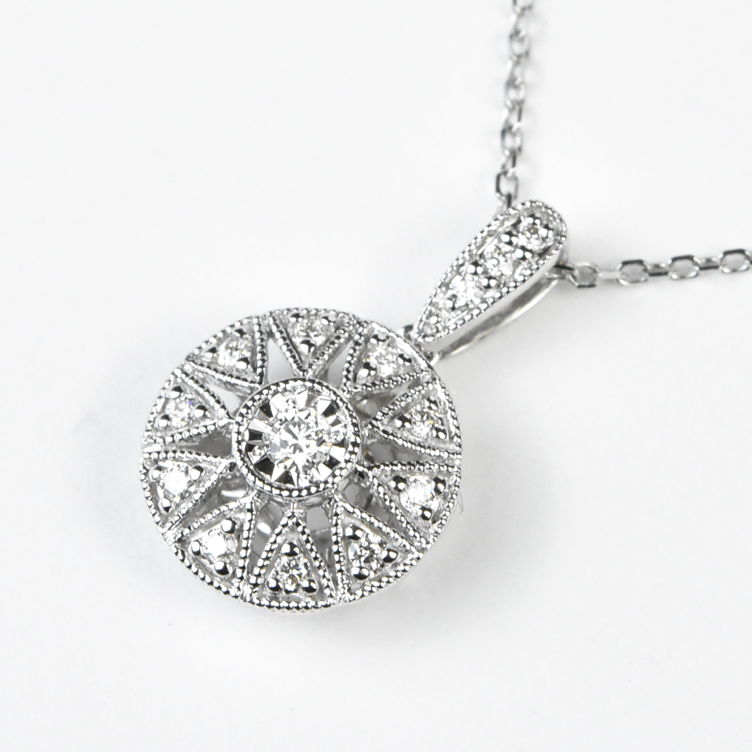 - 14 round, brilliant-cut diamonds with a total weight of .12 carats, SI/GH