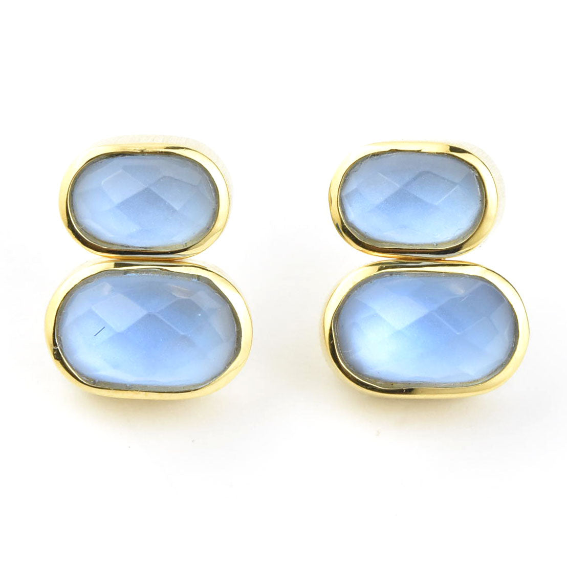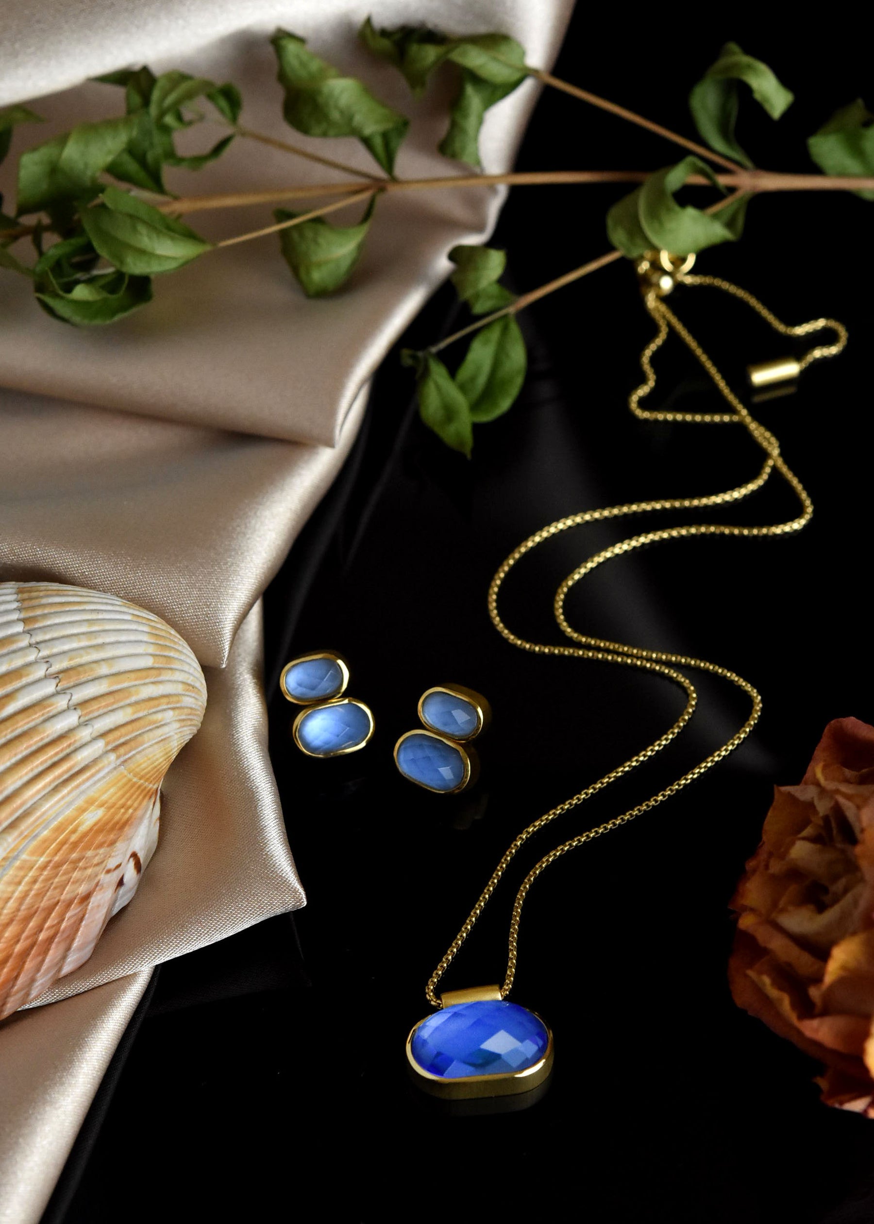 • "Celestial Blue" gemstone* doublet w/ Mother of Pearl backing