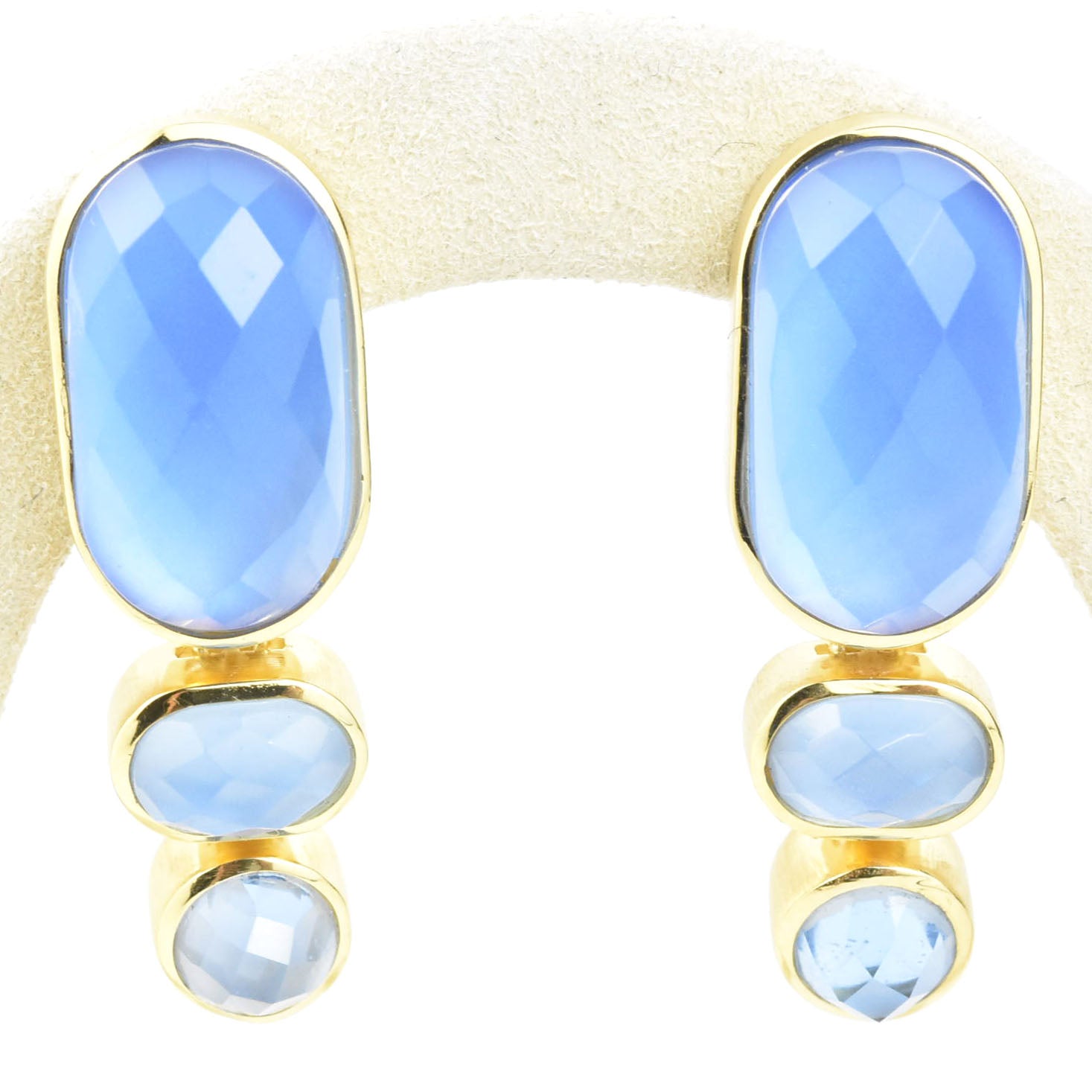 - "Celestial Blue" gemstone* doublet w/ Mother of Pearl backing