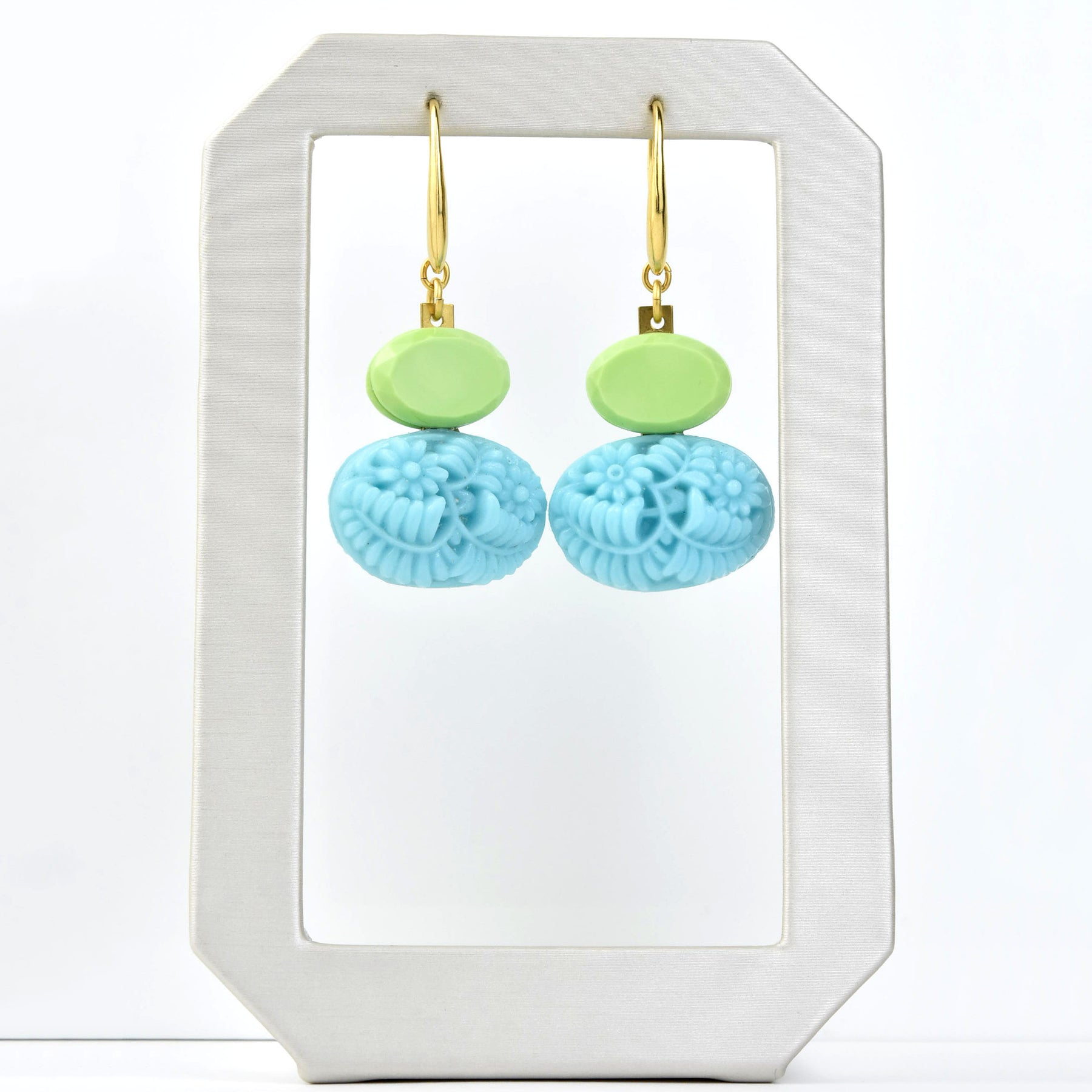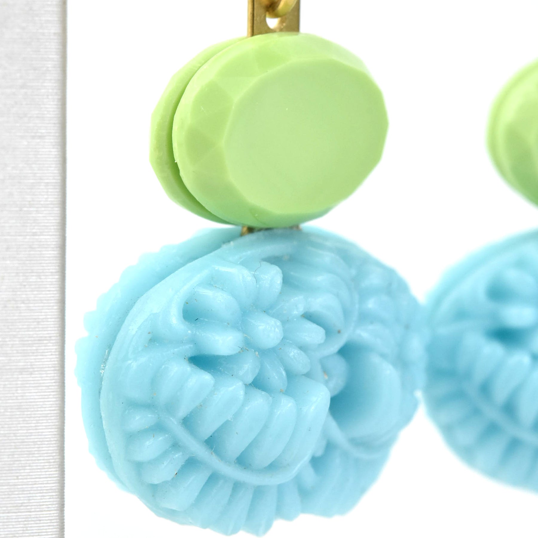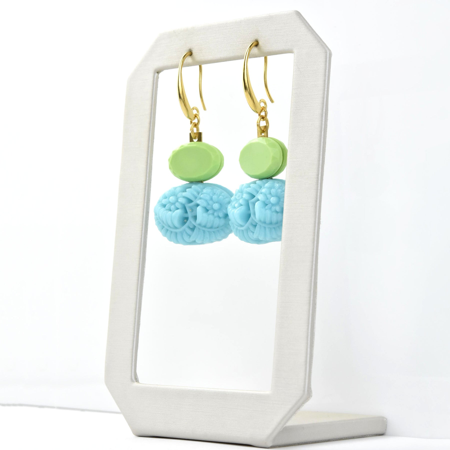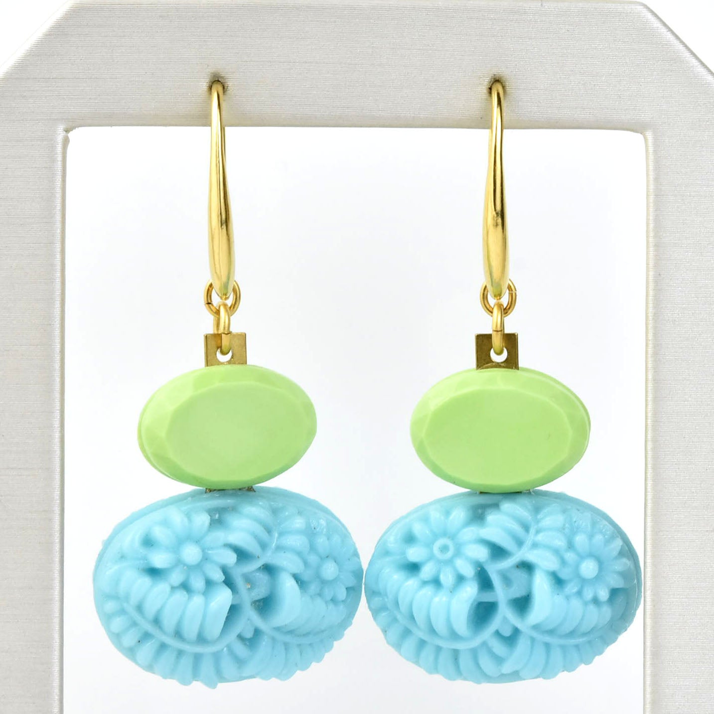 David Aubrey lines vary from delicate, meticulously assembled jewelry of monochromatic hues to larger, more vibrant pieces. Some collections are themed, whether romantic, vintage, tribal, or art deco. Each piece is painstakingly crafted with an array of raw materials, including plated and oxidized brass and white metal, semiprecious stones, vintage glass beads, Indian handmade glass beads, acrylic, and carved bone.