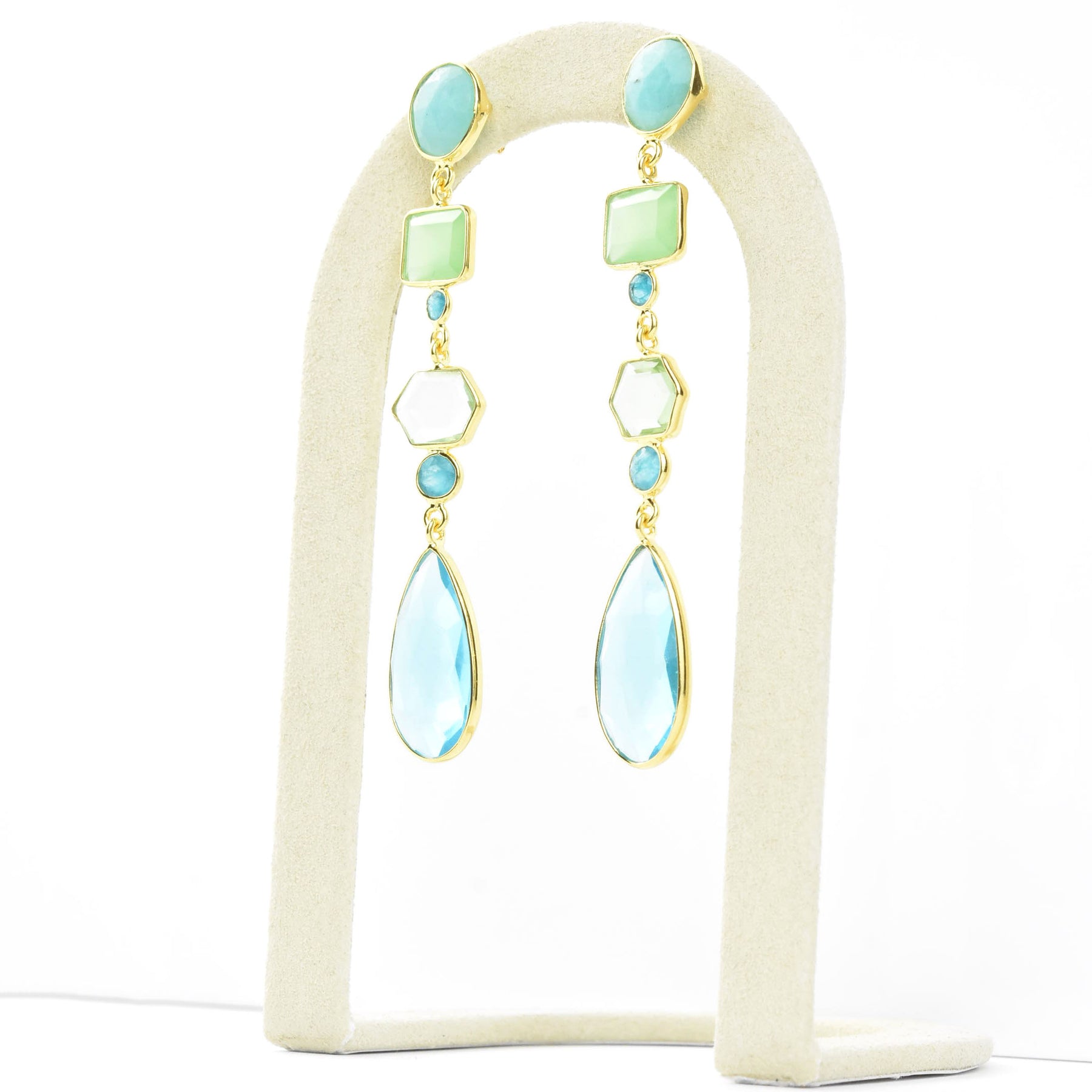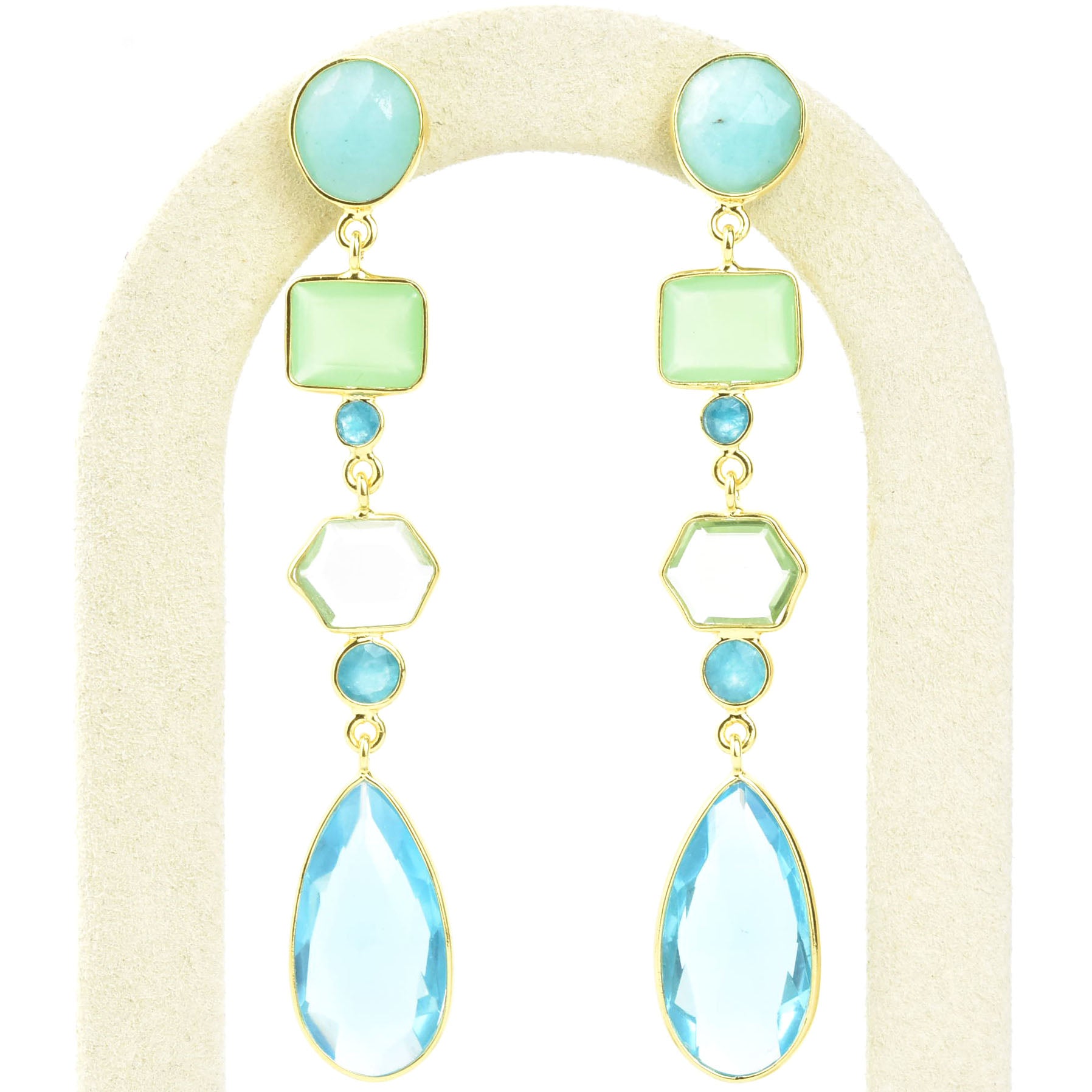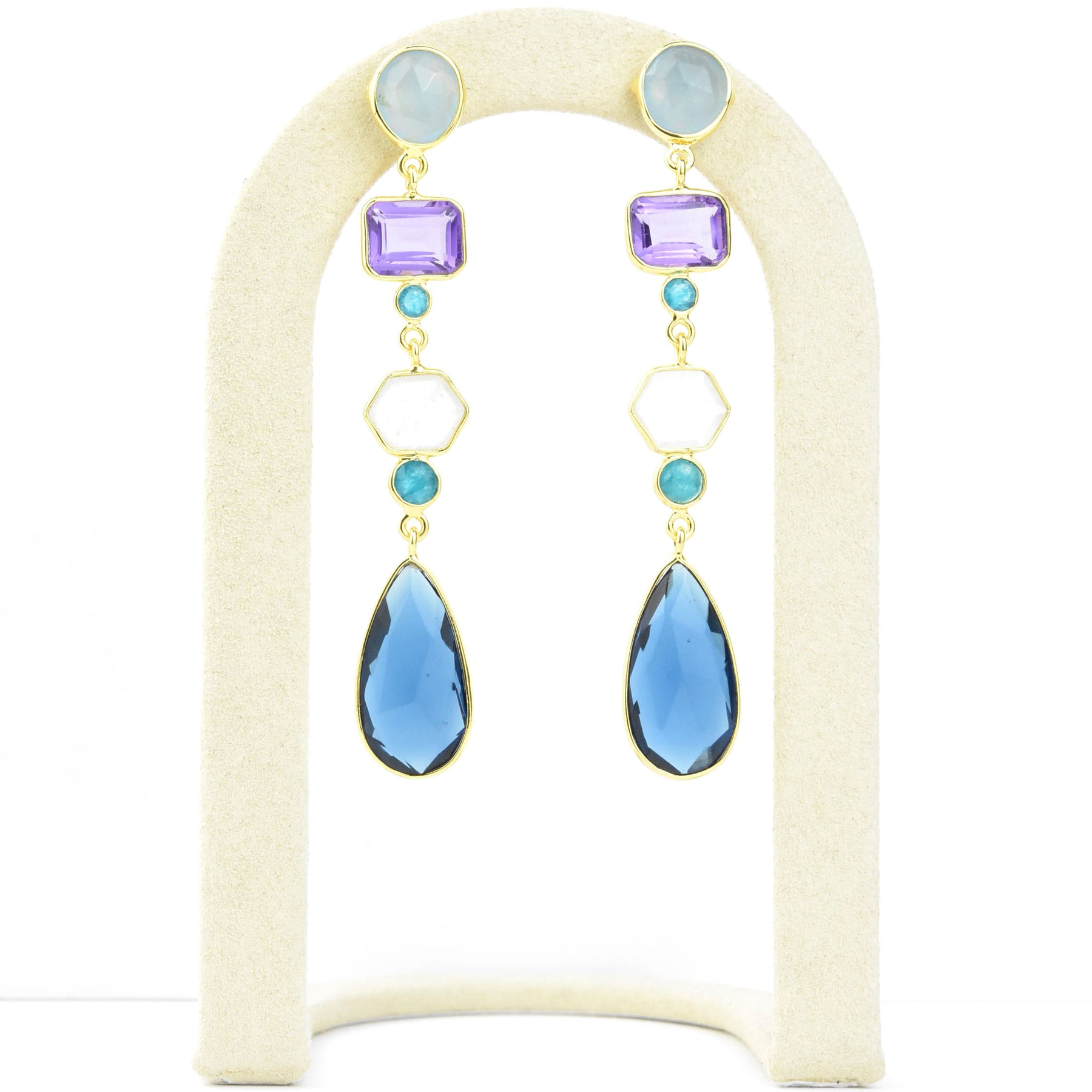 - Natural moonstone, amazonite, chalcedony, green quartz, amethyst