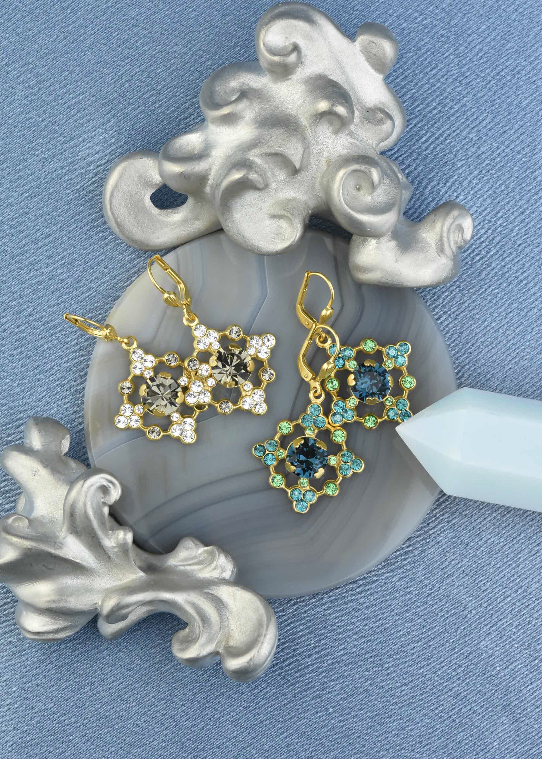 Combining classic European findings and a selection of historical American pieces, all La Vie designs are hand set with brilliant Swarovski crystals and delicately enameled.