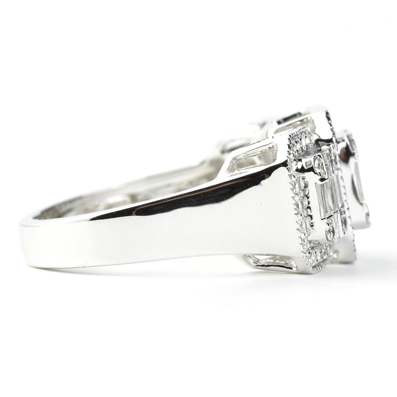 - Round brilliant-cut and baguette diamonds, weighing 0.80 total carats.