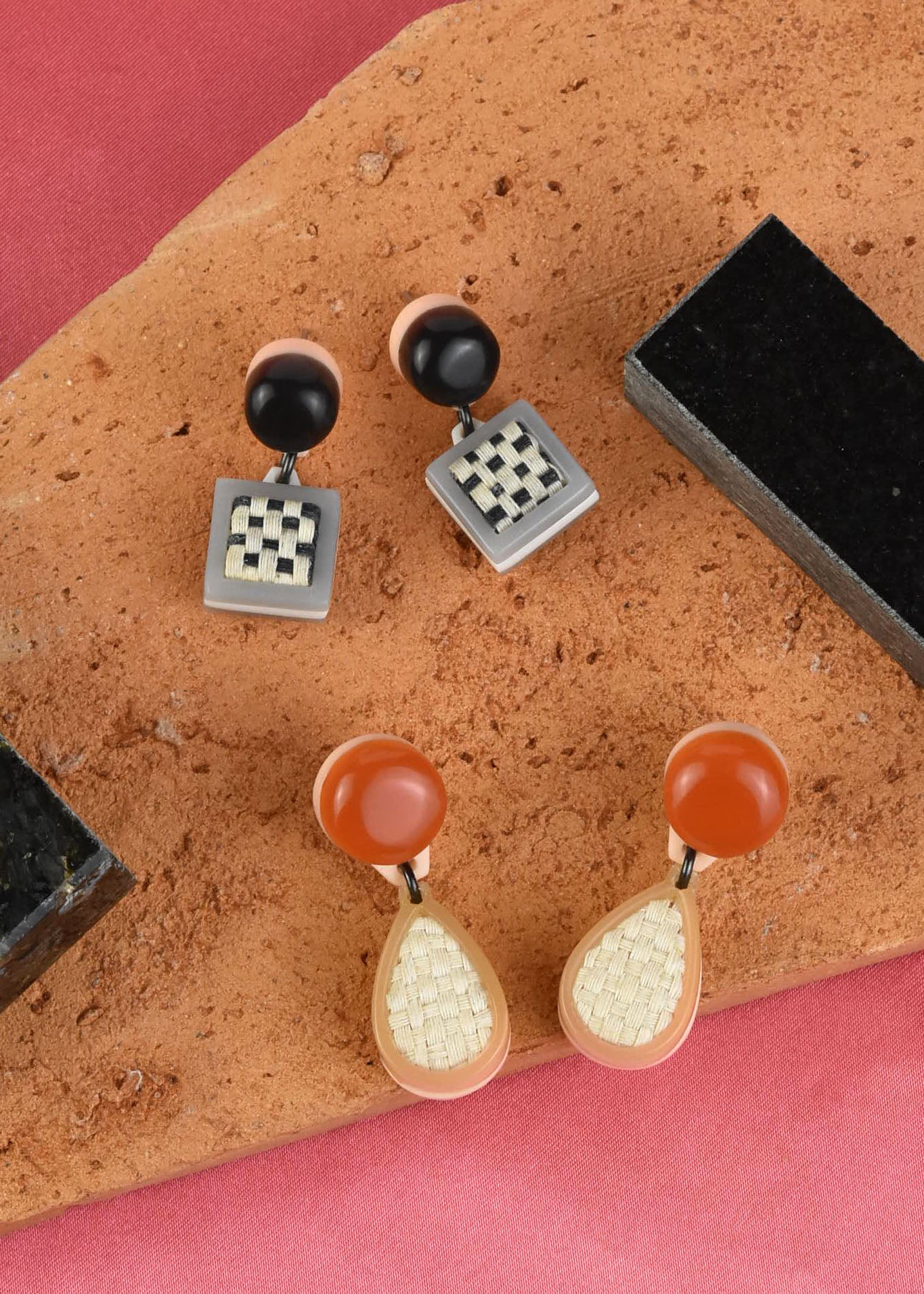 Using architecture and art as inspiration, Paulina Finn designs unique and contemporary jewelry and accessories.  Her pieces are made using nontoxic recycled resin in her small atelier in Buenos Aires, Argentina.