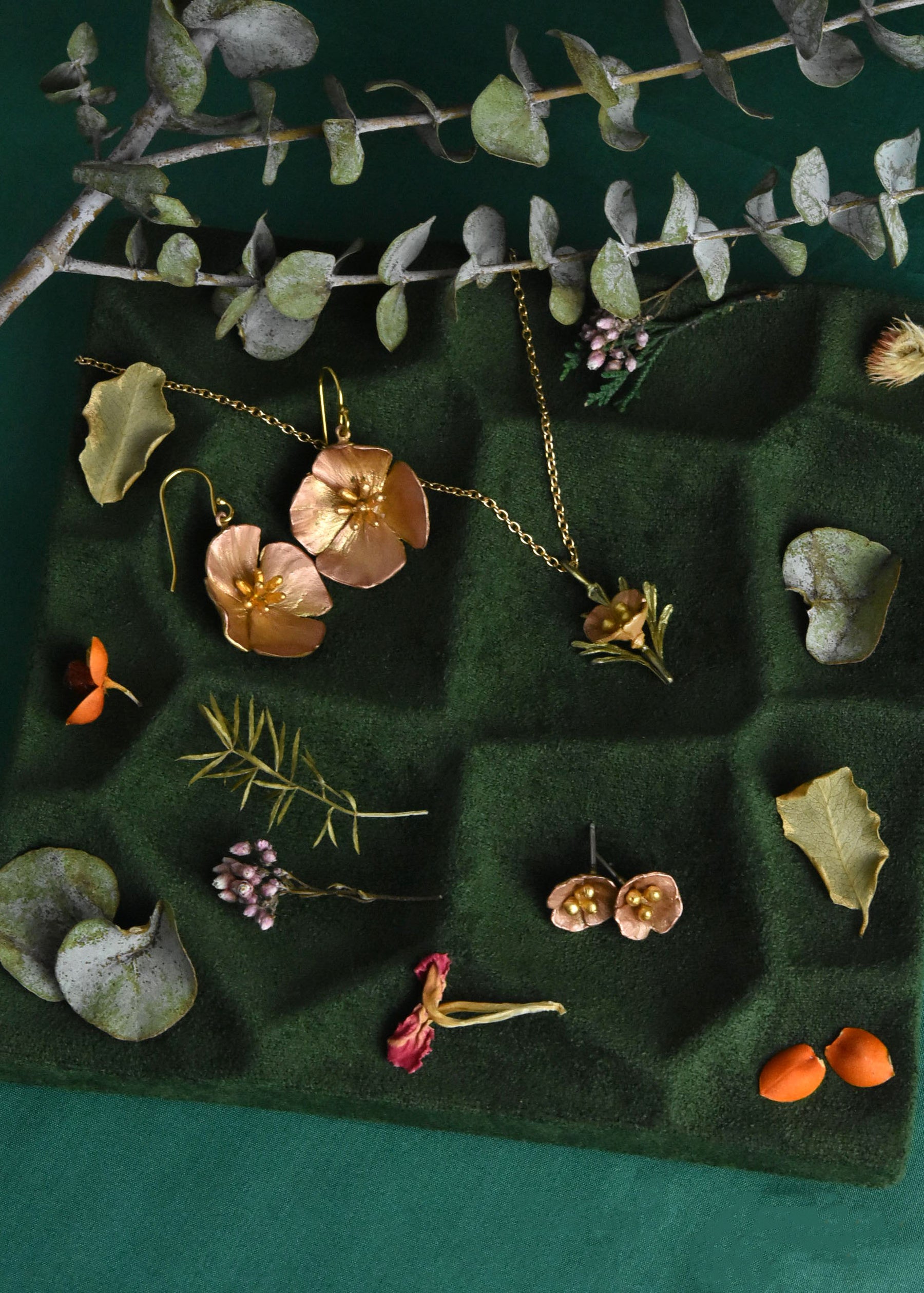 Silver Seasons Jewelry collection is brought to you by designer Michael Michaud. Known for his nature-inspired metal work, Michaud casts his pieces from real plant life and other natural specimens. Designs include everything from statement leaf necklaces to realistic flower earrings, bangle bracelets, drop earrings, and pendants.