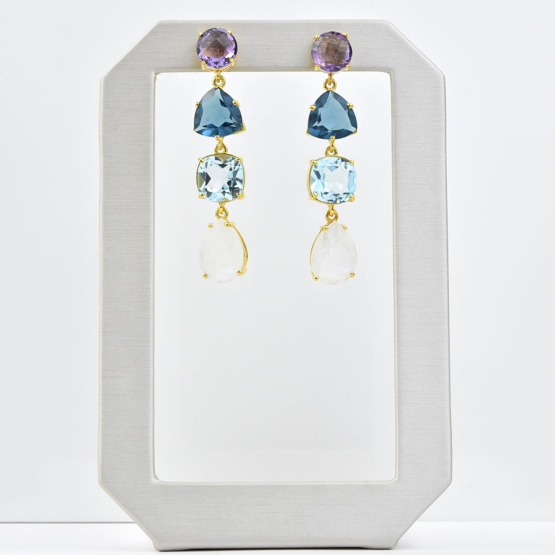 • Amethyst, Blue Topaz, Moonstone and lab grown Iolite