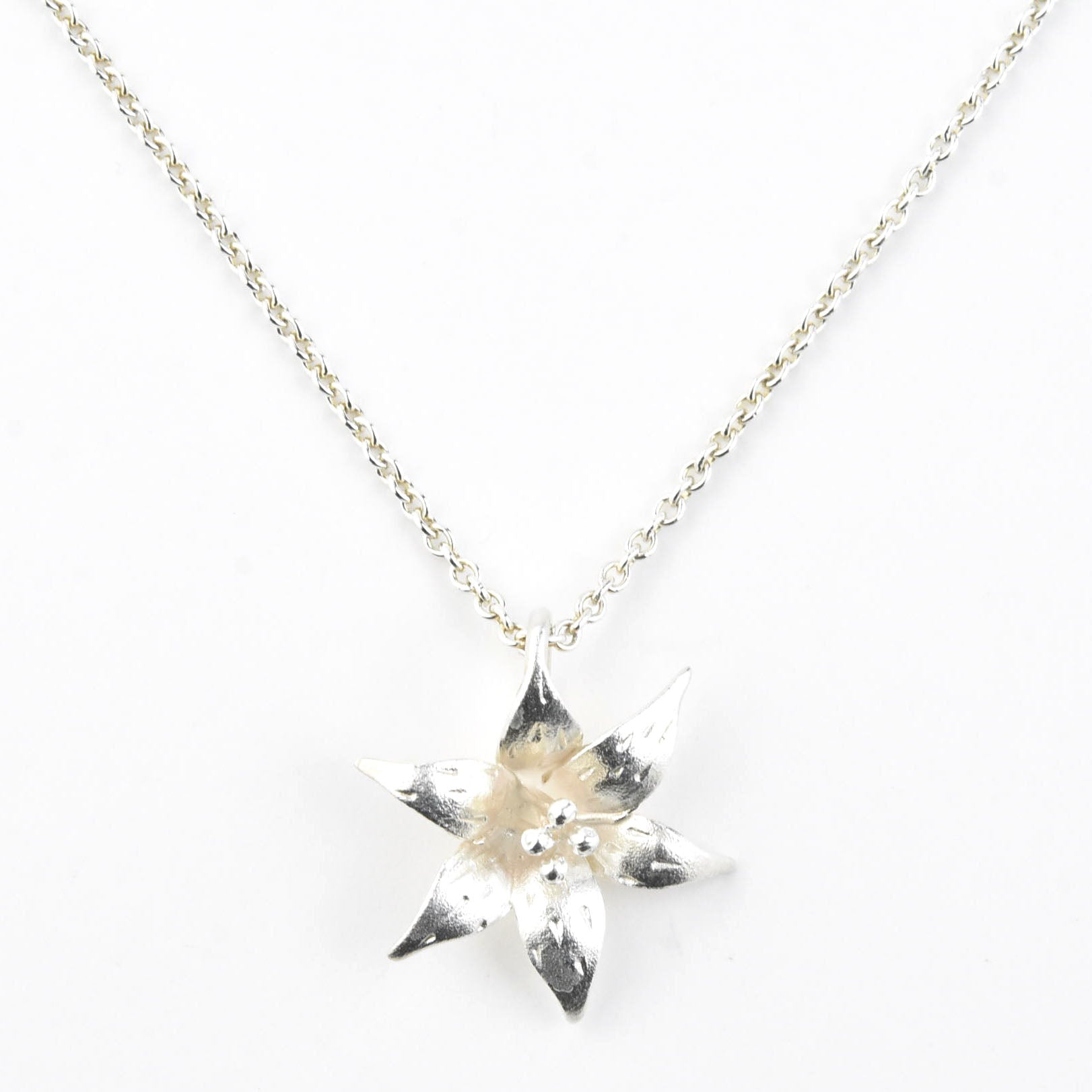 Elise Moran creates beautiful, intricate floral jewelry in sterling silver. Each piece is lovingly handmade by Elise and finished with a satin-luster.