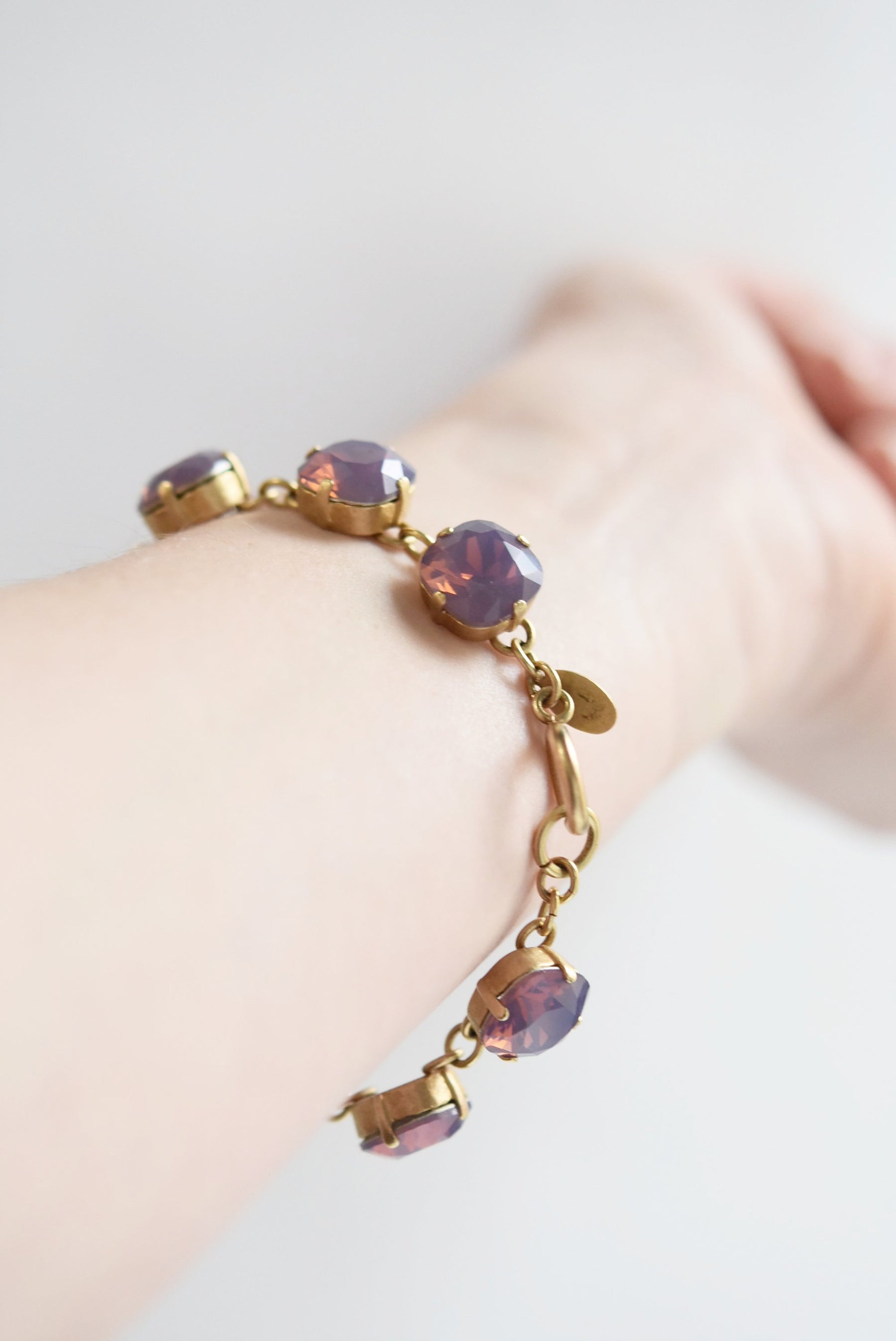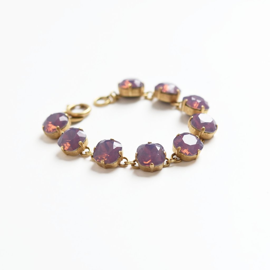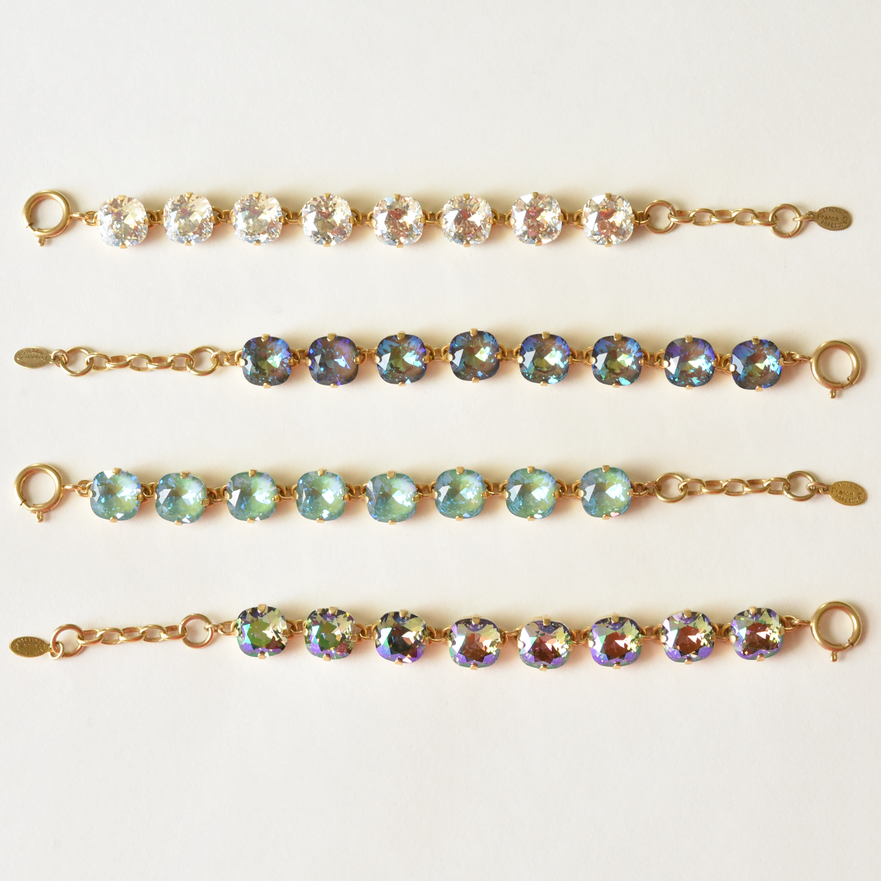 These large colorful crystals subvert the classic diamond bracelet look with exaggerated size and fun color!