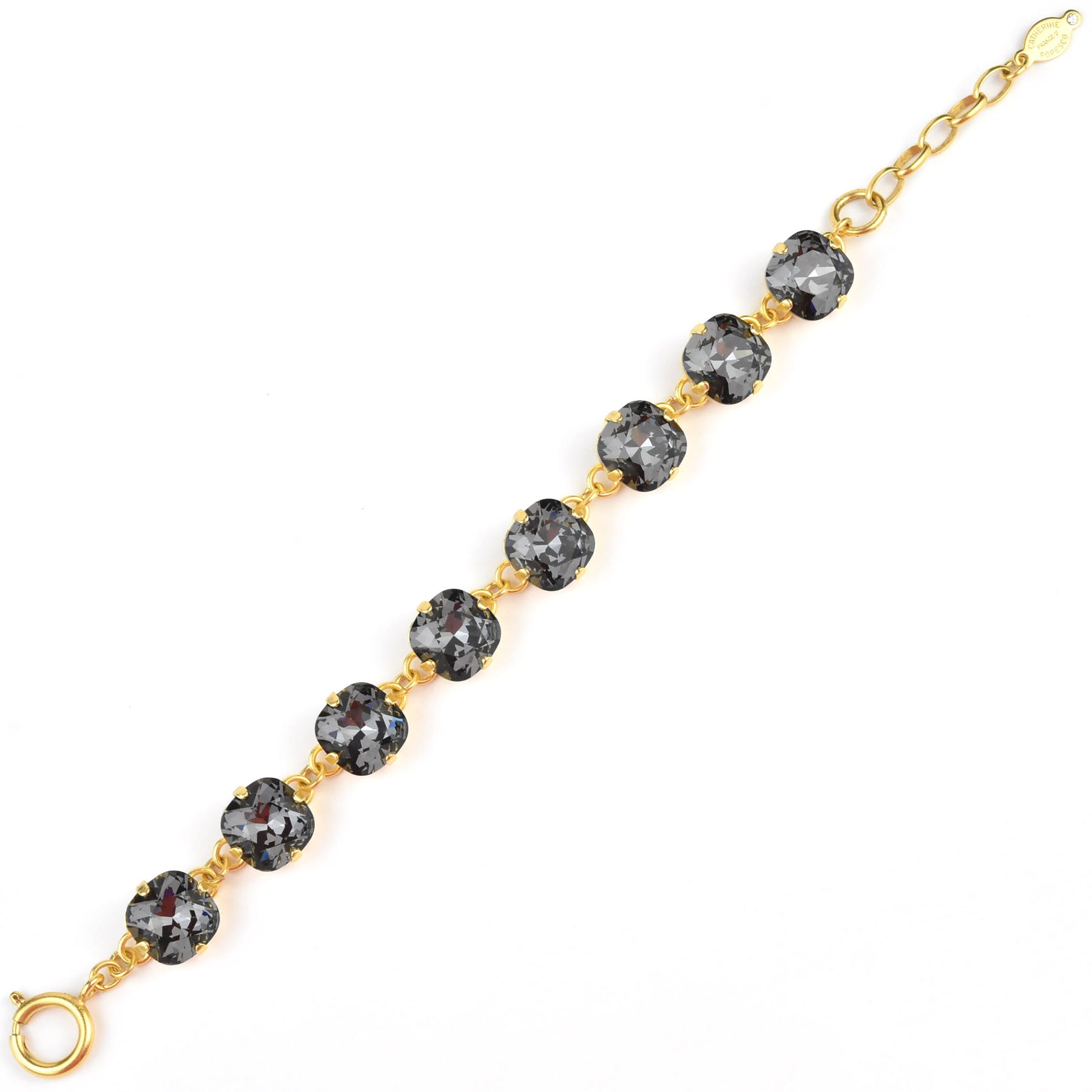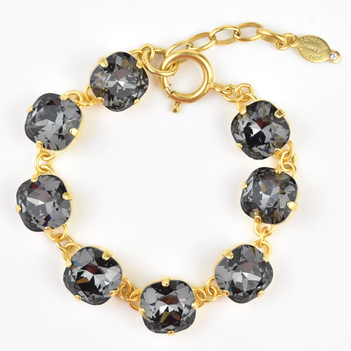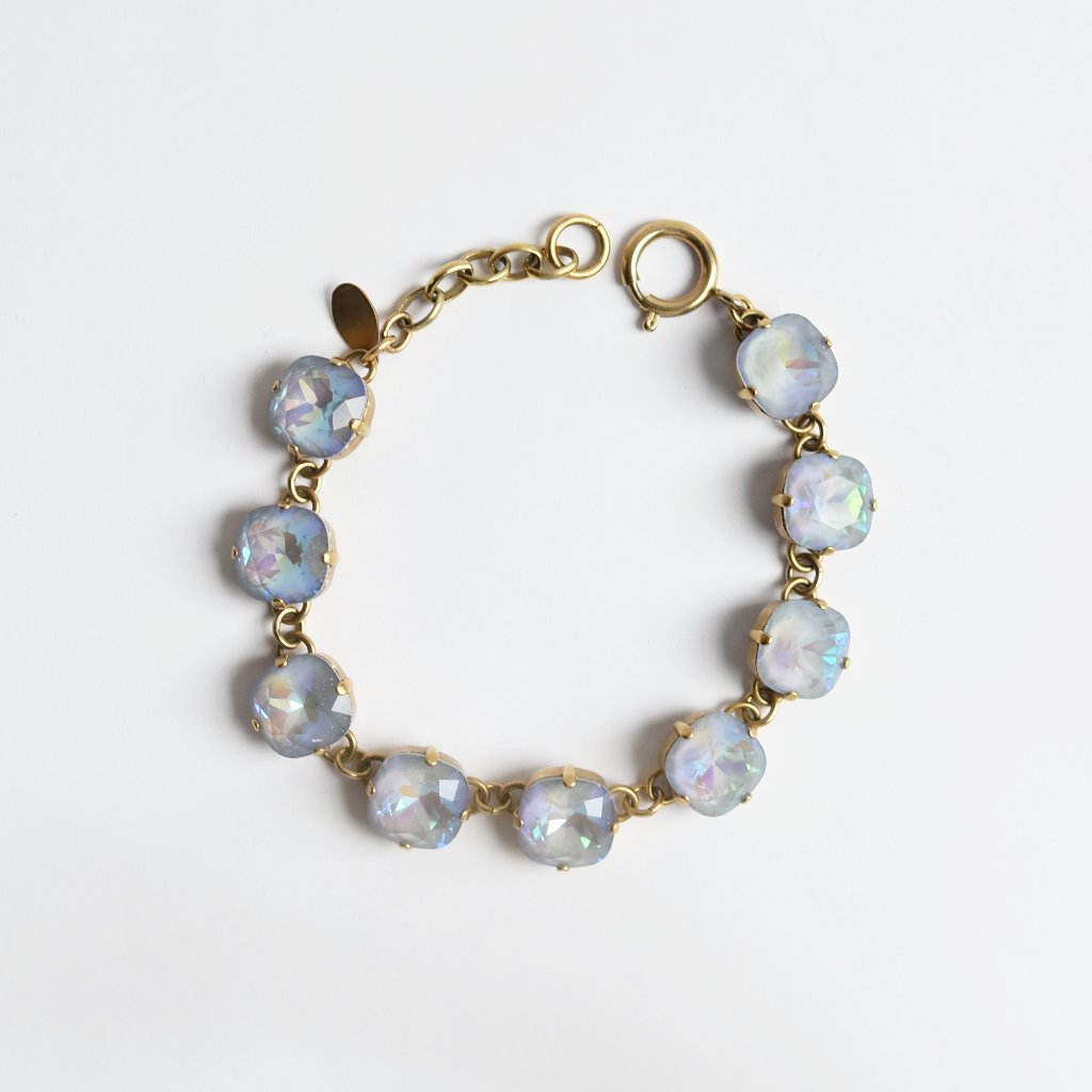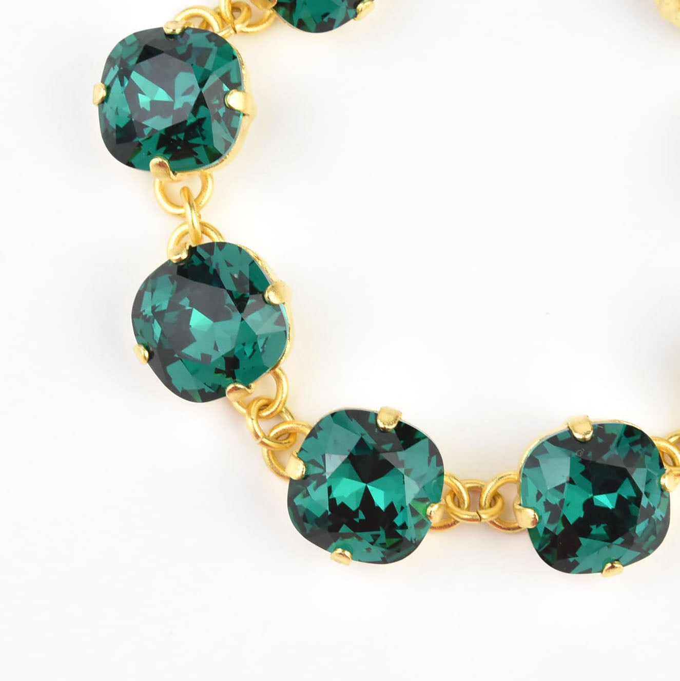 These large colorful crystals subvert the classic diamond bracelet look with exaggerated size and fun color!