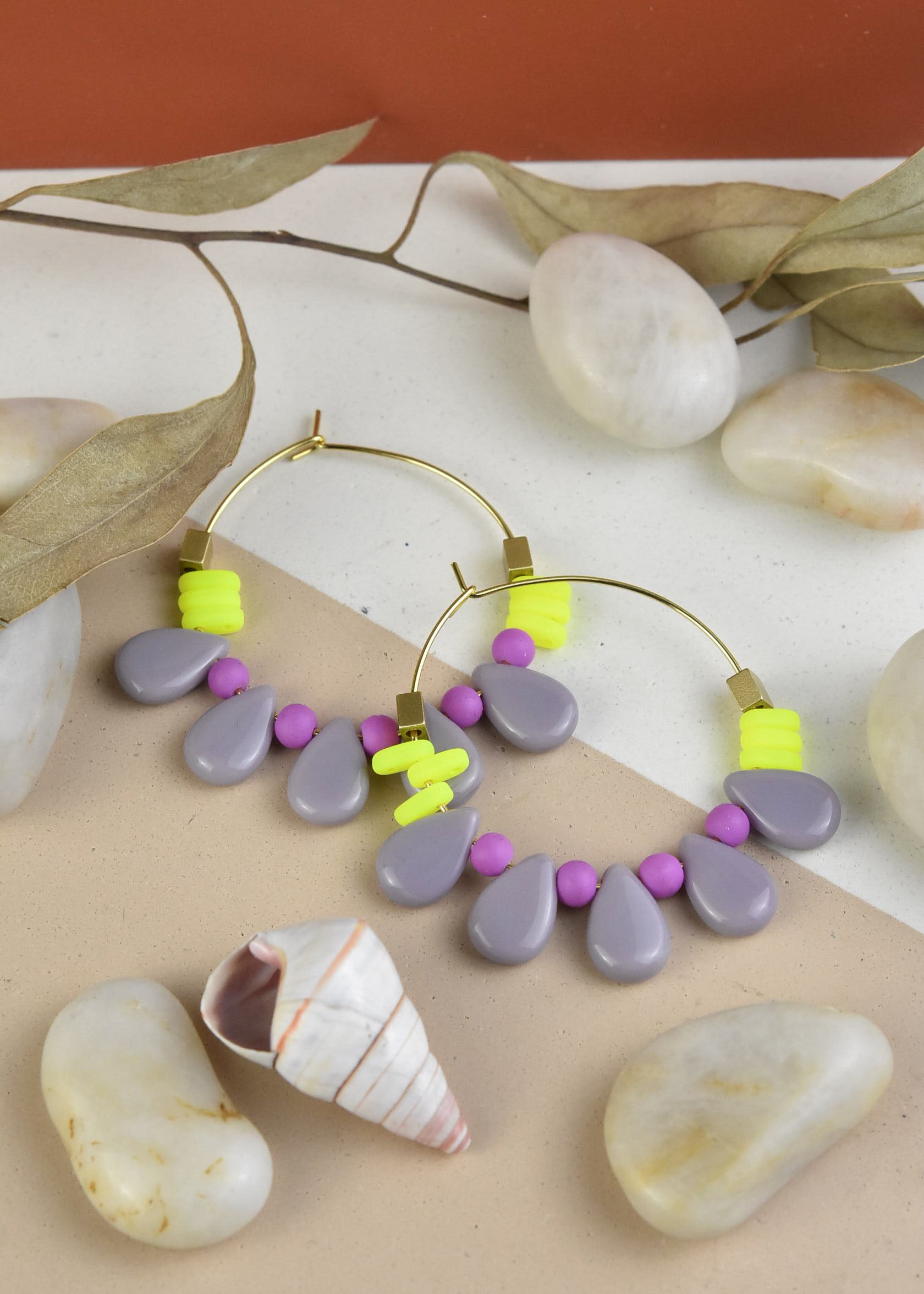 David Aubrey lines vary from delicate, meticulously assembled jewelry of monochromatic hues to larger, more vibrant pieces. Some collections are themed, whether romantic, vintage, tribal, or art deco. Each piece is painstakingly crafted with an array of raw materials, including plated and oxidized brass and white metal, semiprecious stones, vintage glass beads, Indian handmade glass beads, acrylic, and carved bone.